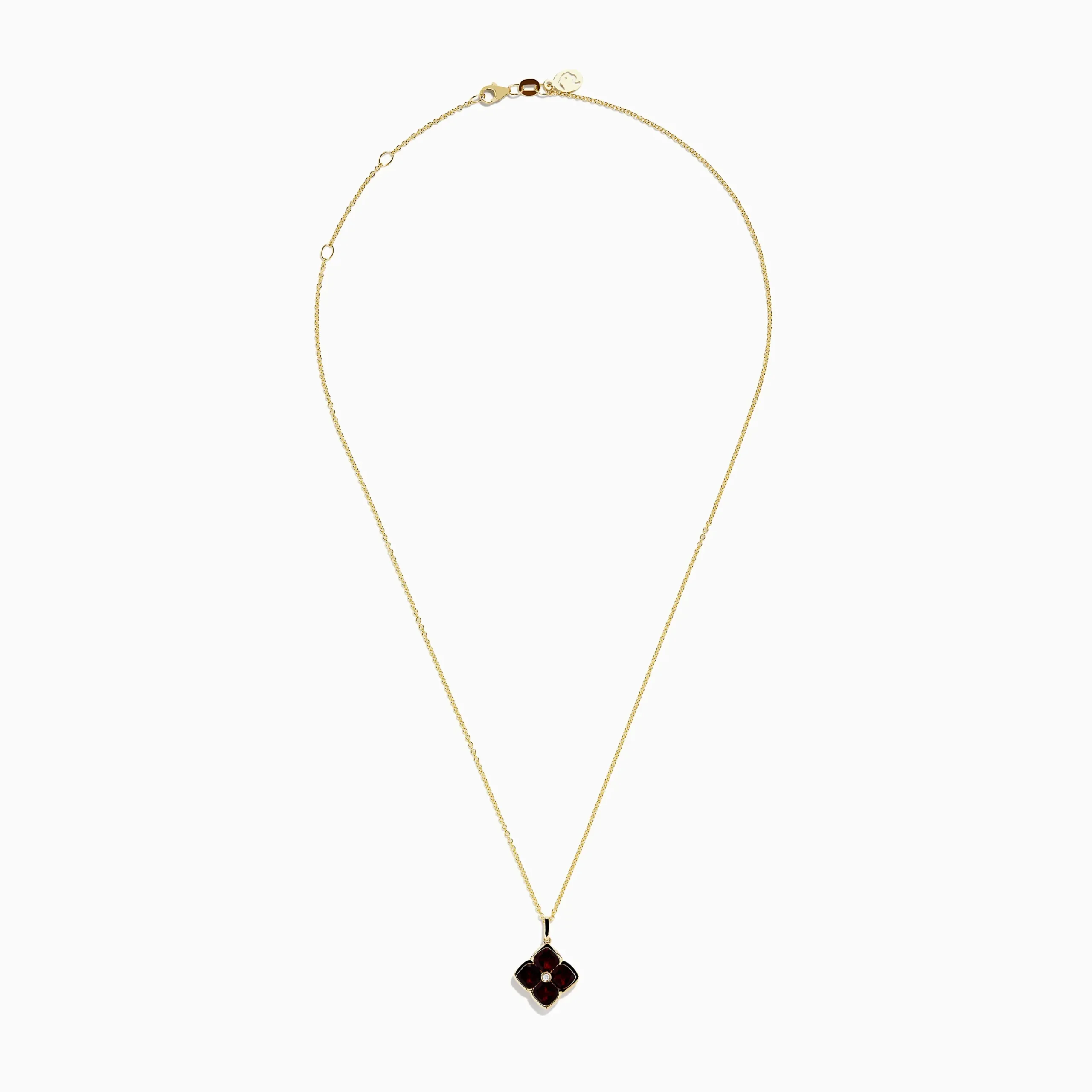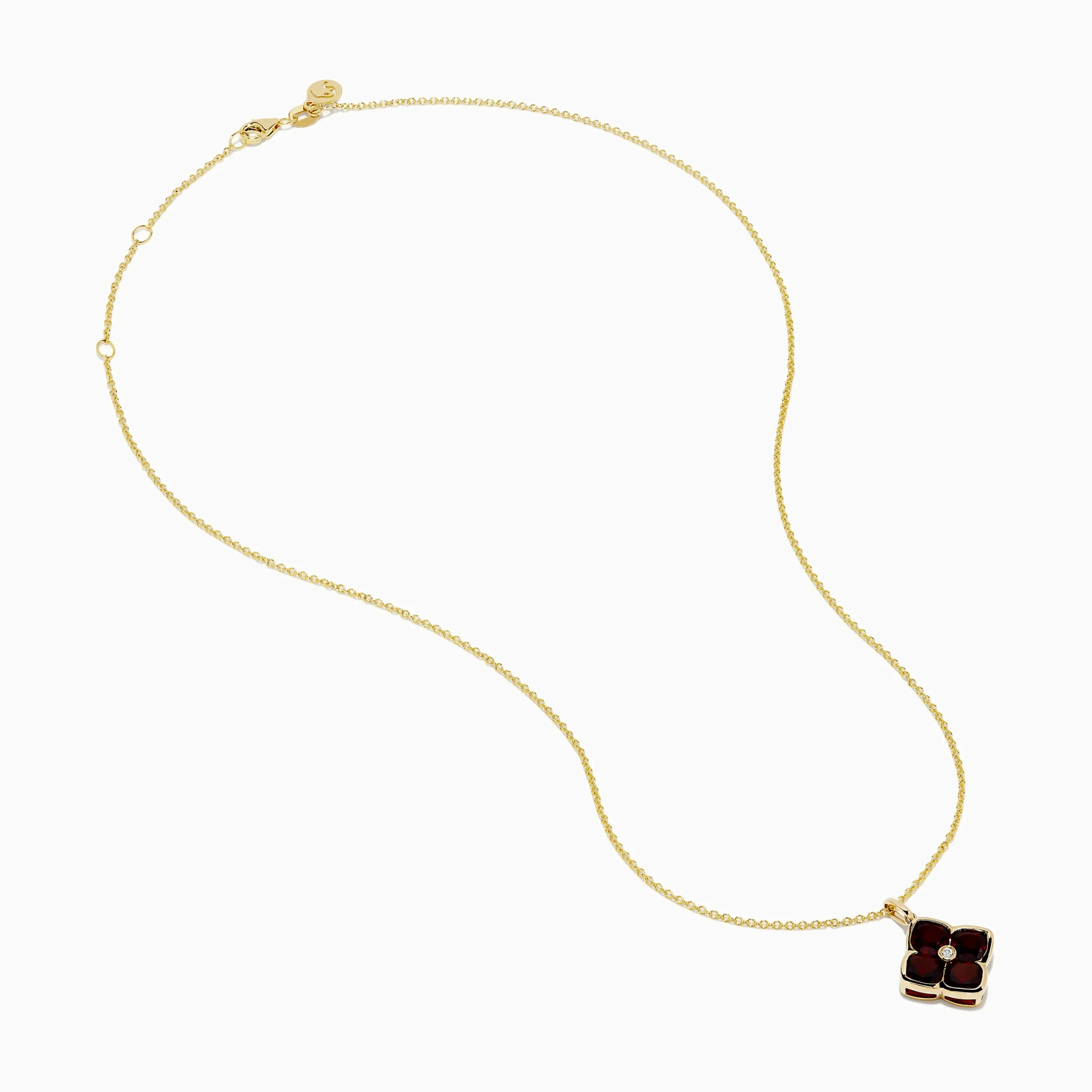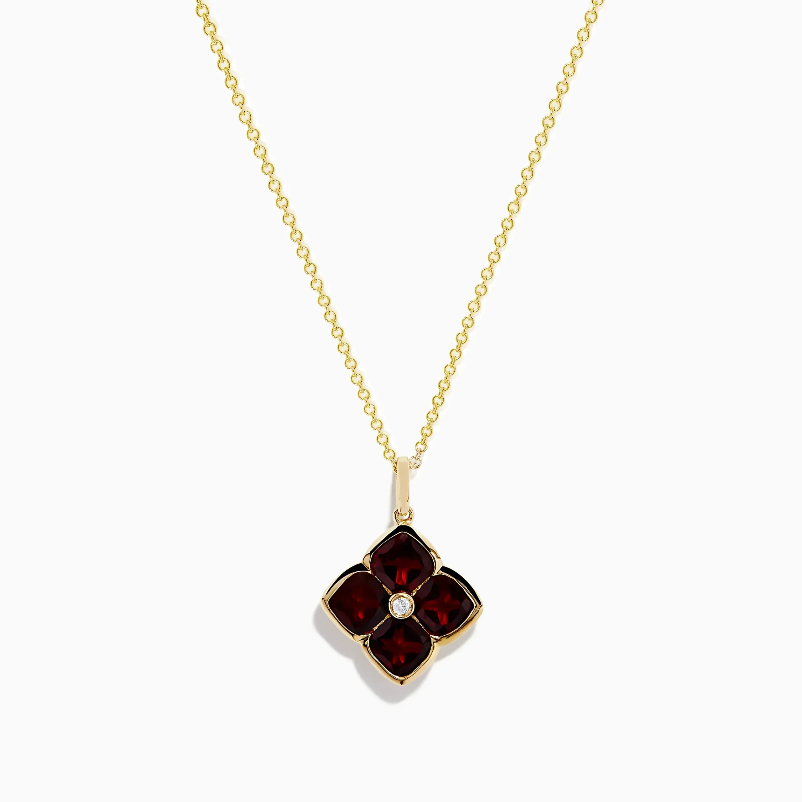 Metal:14K Gold Metal Color:YellowStone: Cushion Garnet 3.04 Stone 2: Round Diamond 0.02 14K Yellow Gold Garnet and Diamo…