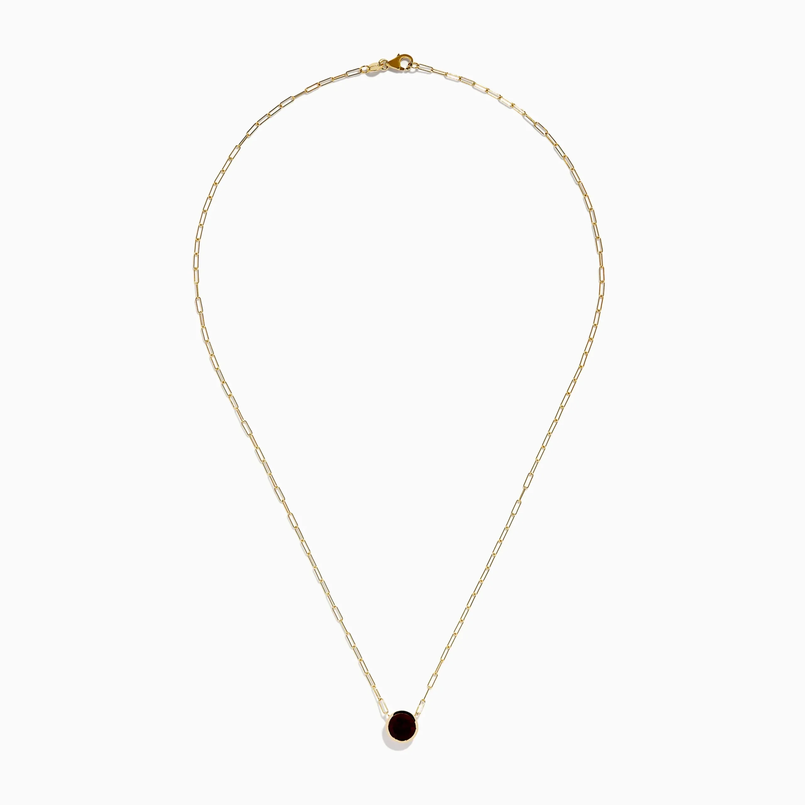 14K Yellow Gold Garnet Bezel Pendant with Paperclip Chain