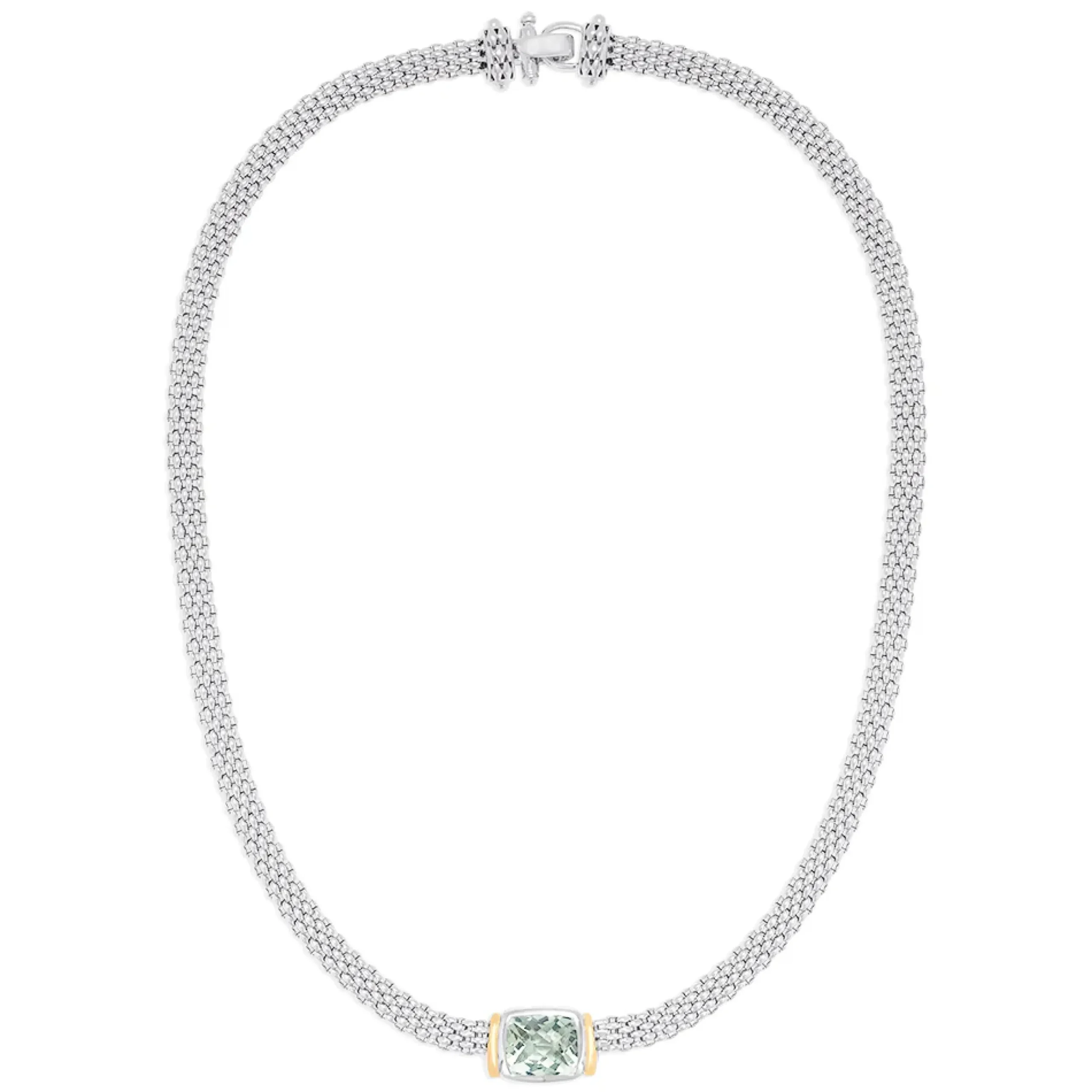 Effy 925 Sterling Silver and 18K Gold Green Amethyst Necklace, 4.70 TCW