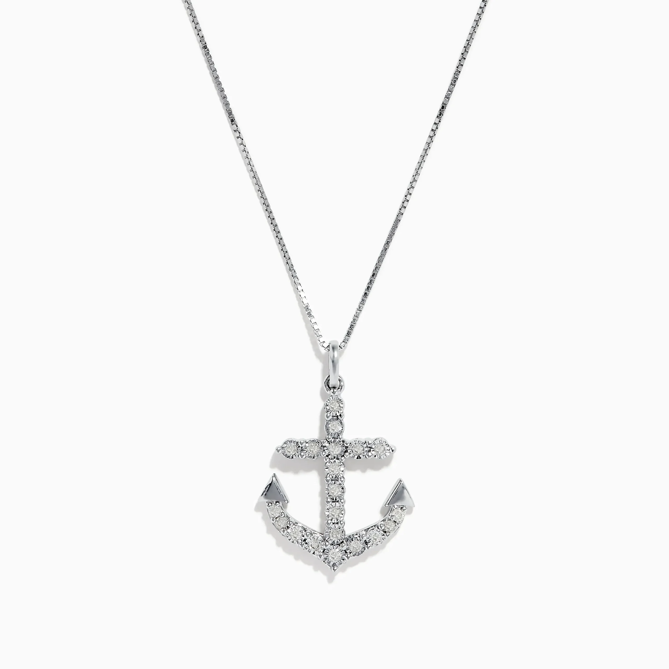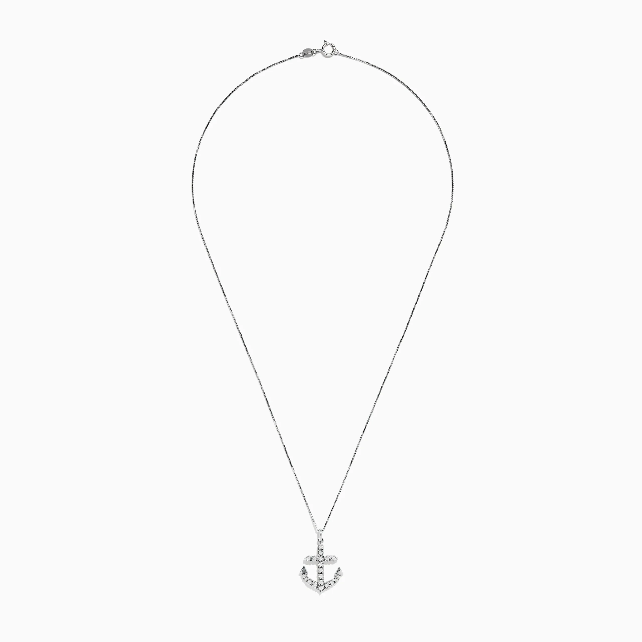 Metal:Sterling Silver Metal Color:WhiteStone: Round Diamond 0.18925 Sterling Silver Diamond Anchor Pendant