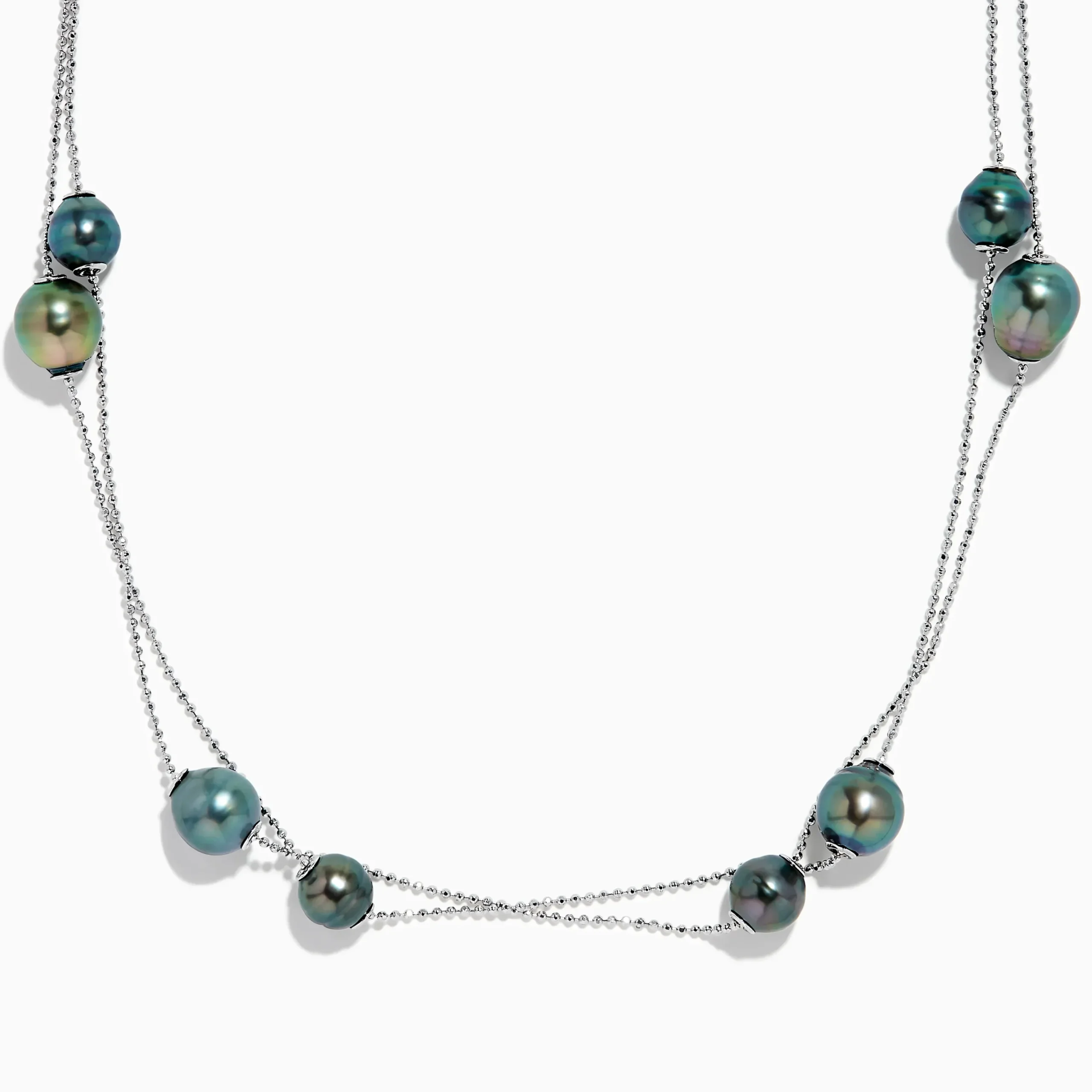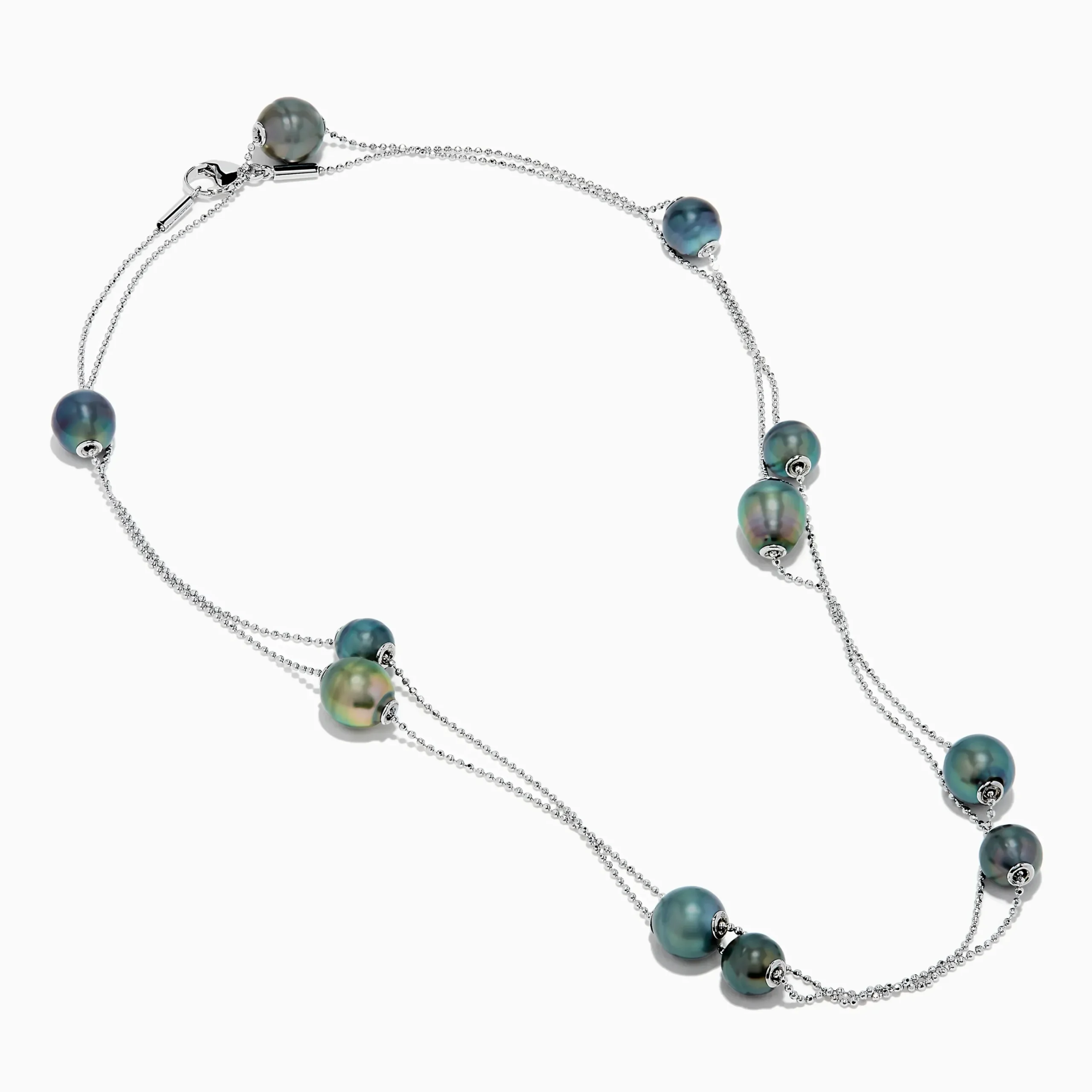 925 Sterling Silver Tahitian Pearl Station Necklace