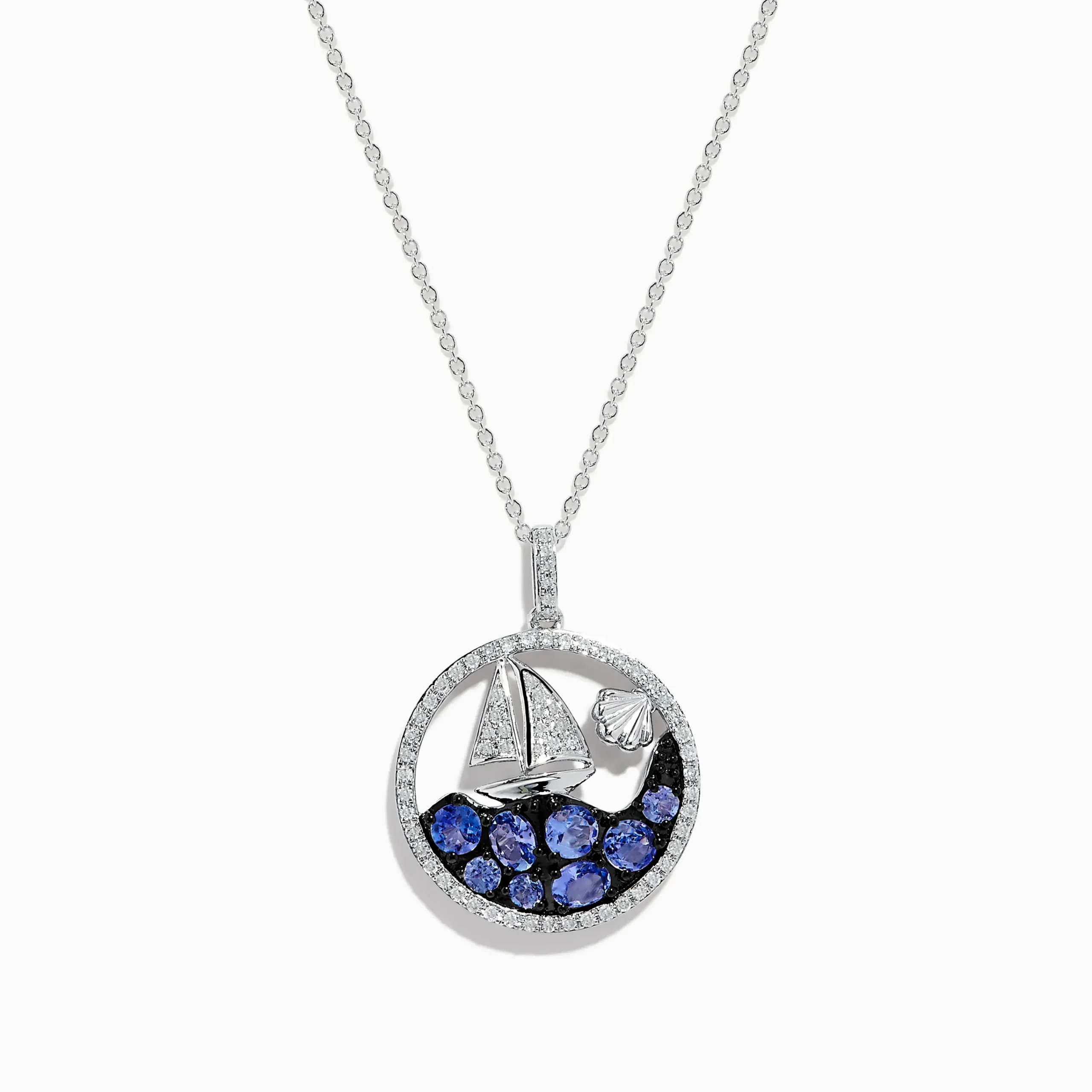Effy 925 Sterling Silver Tanzanite and Diamond Sailboat Pendant
