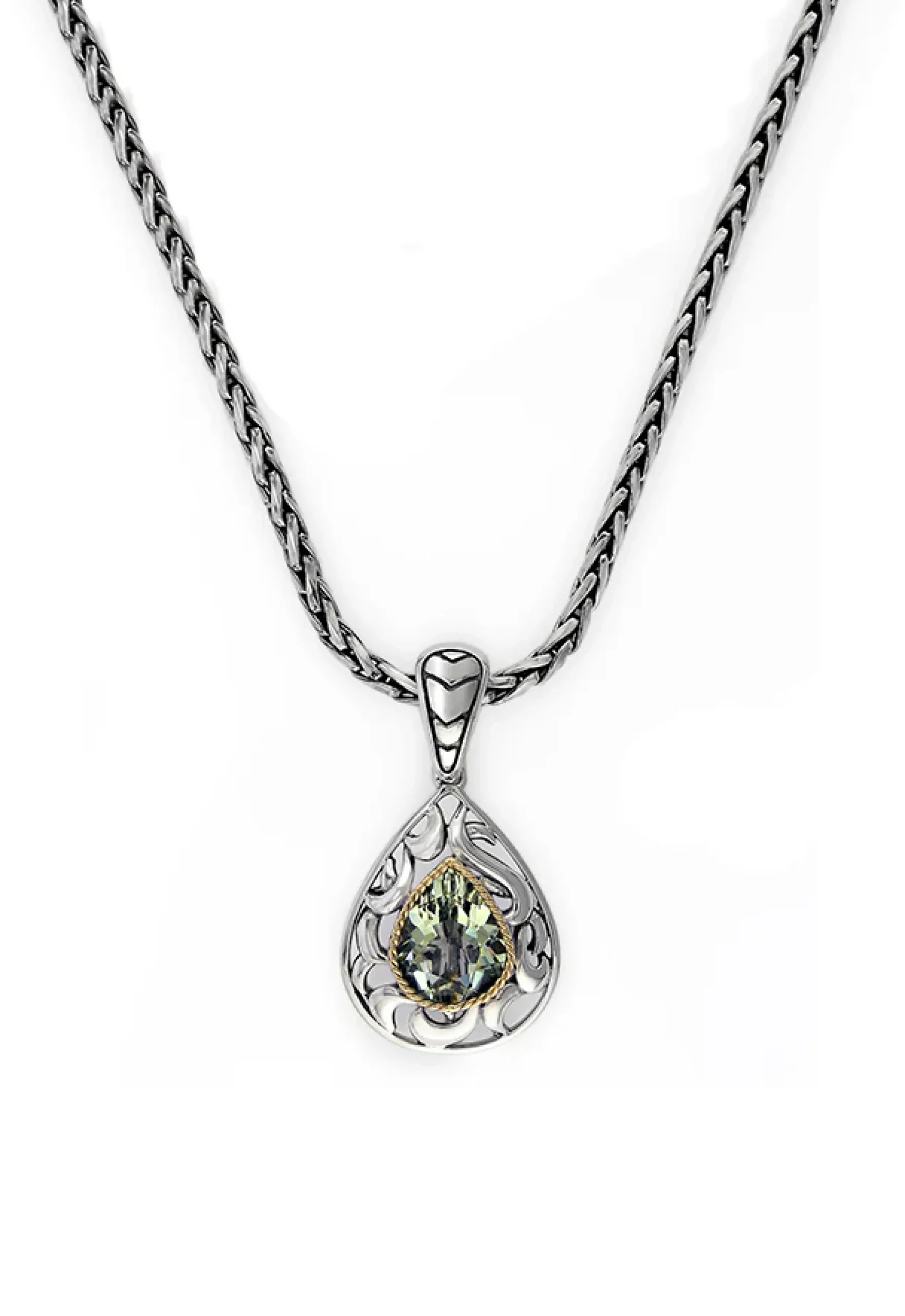 Effy 925 Sterling Silver & 18K Yellow Gold Green Amethyst Pendant, 2.75 TCW