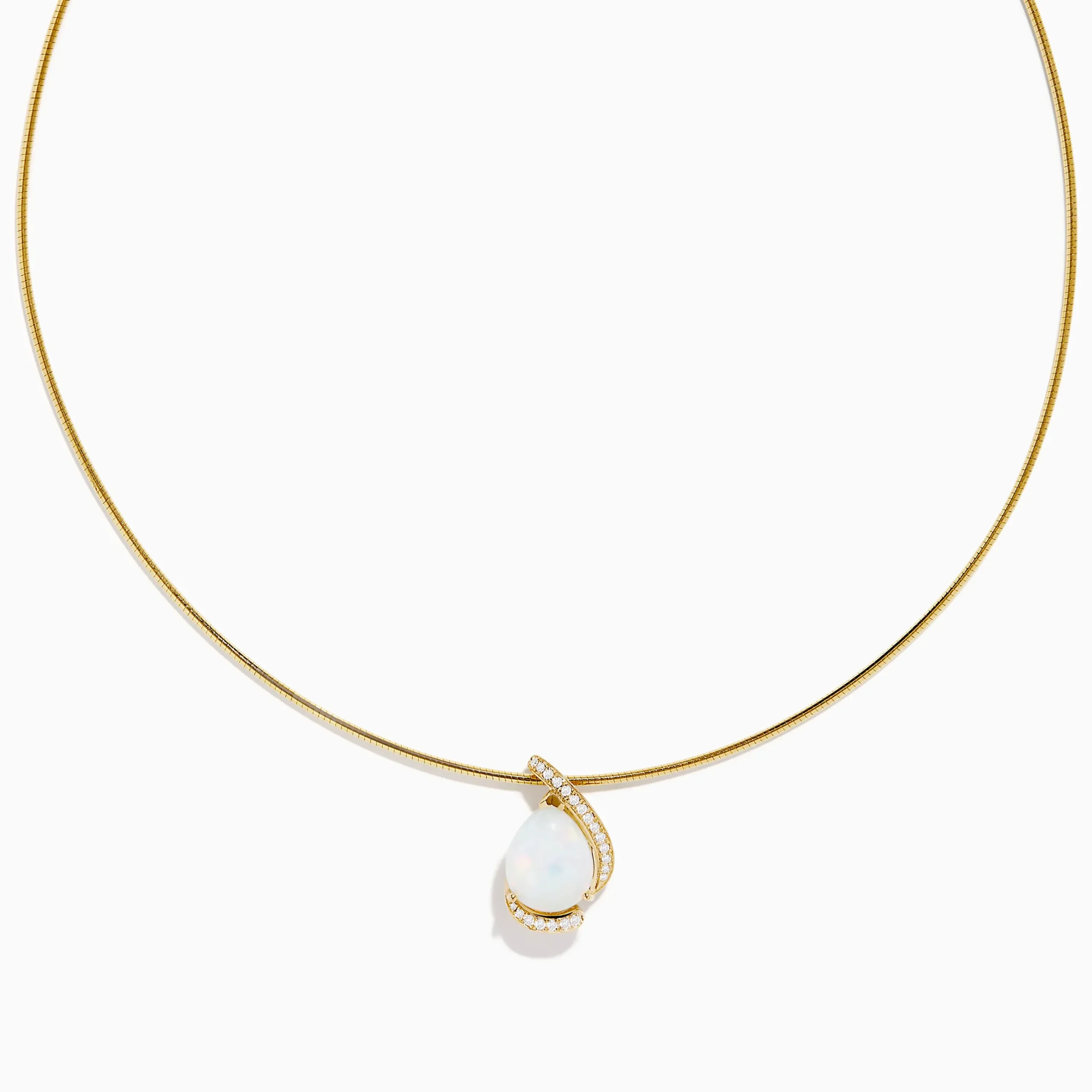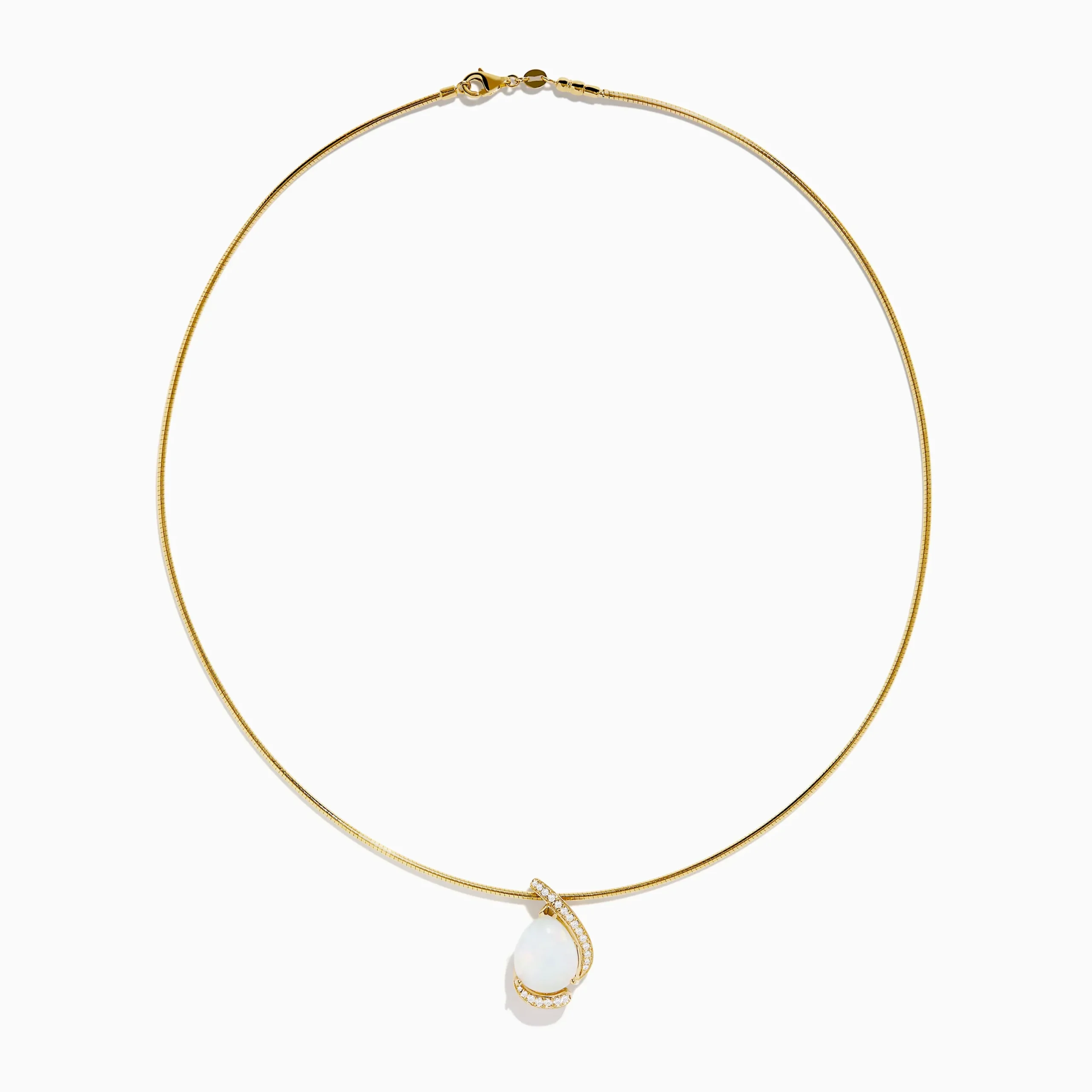 Aurora 14K Yellow Gold Opal and Diamond Snake Chain