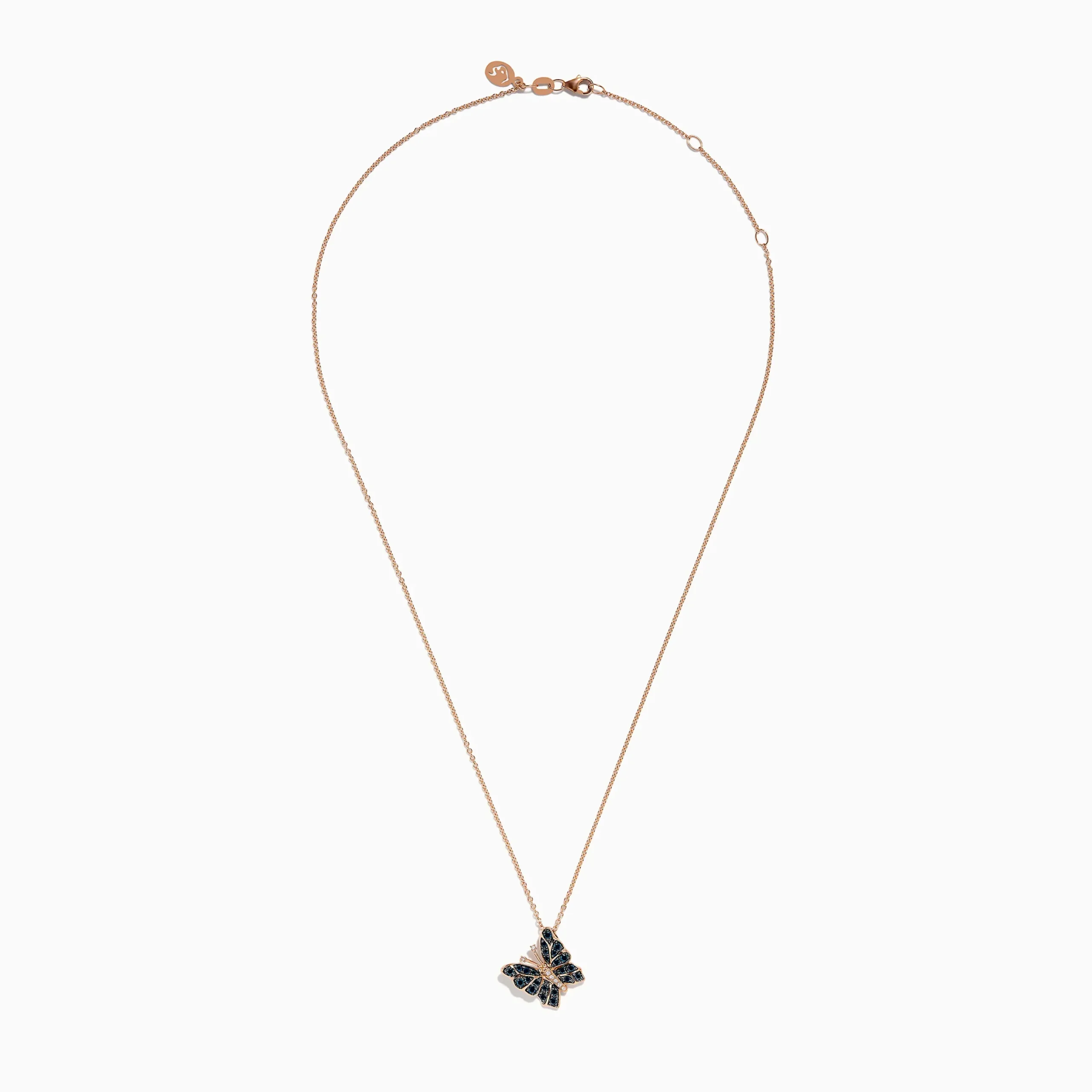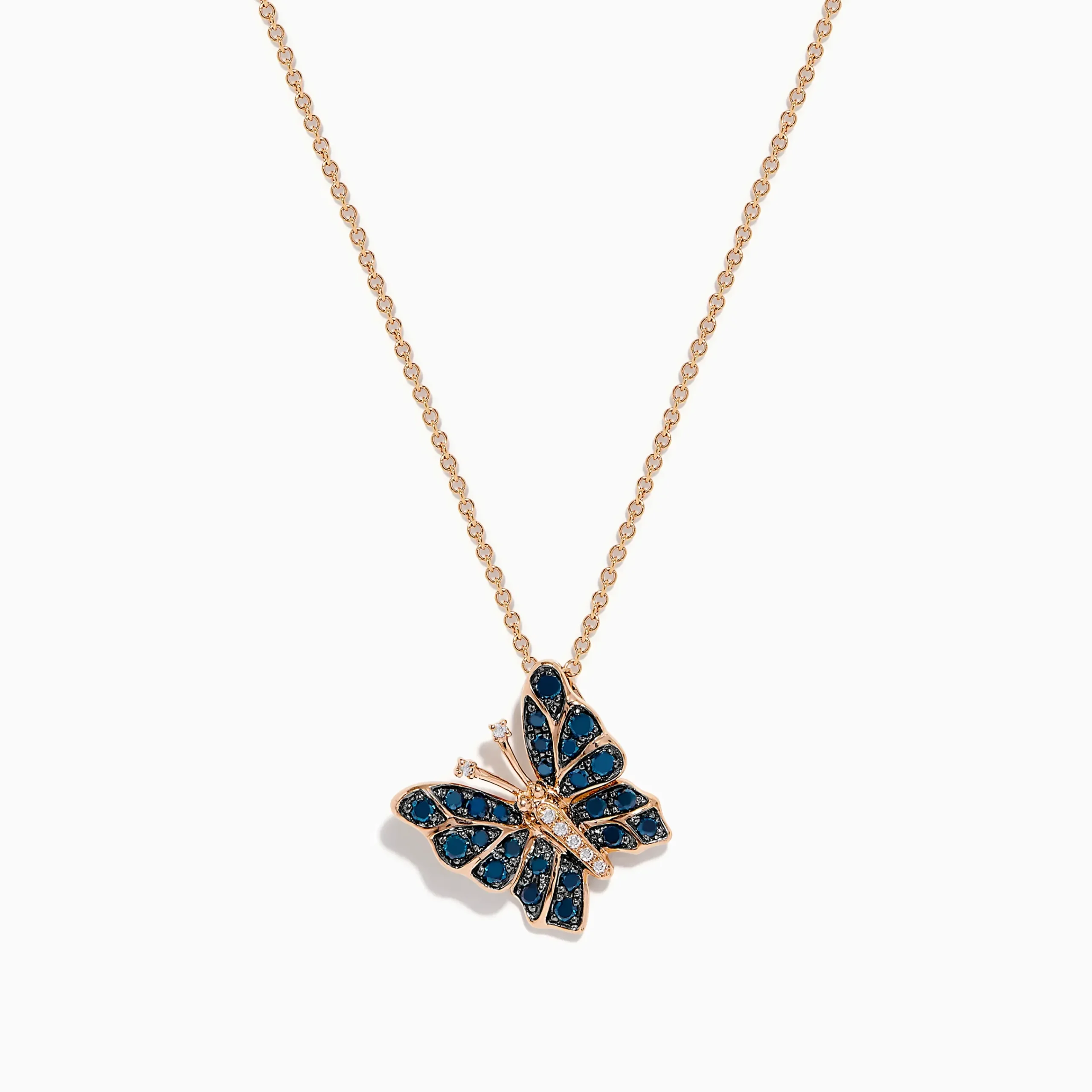 Bella Bleu 14K Rose Gold White and Blue Diamond Butterfly Pendant