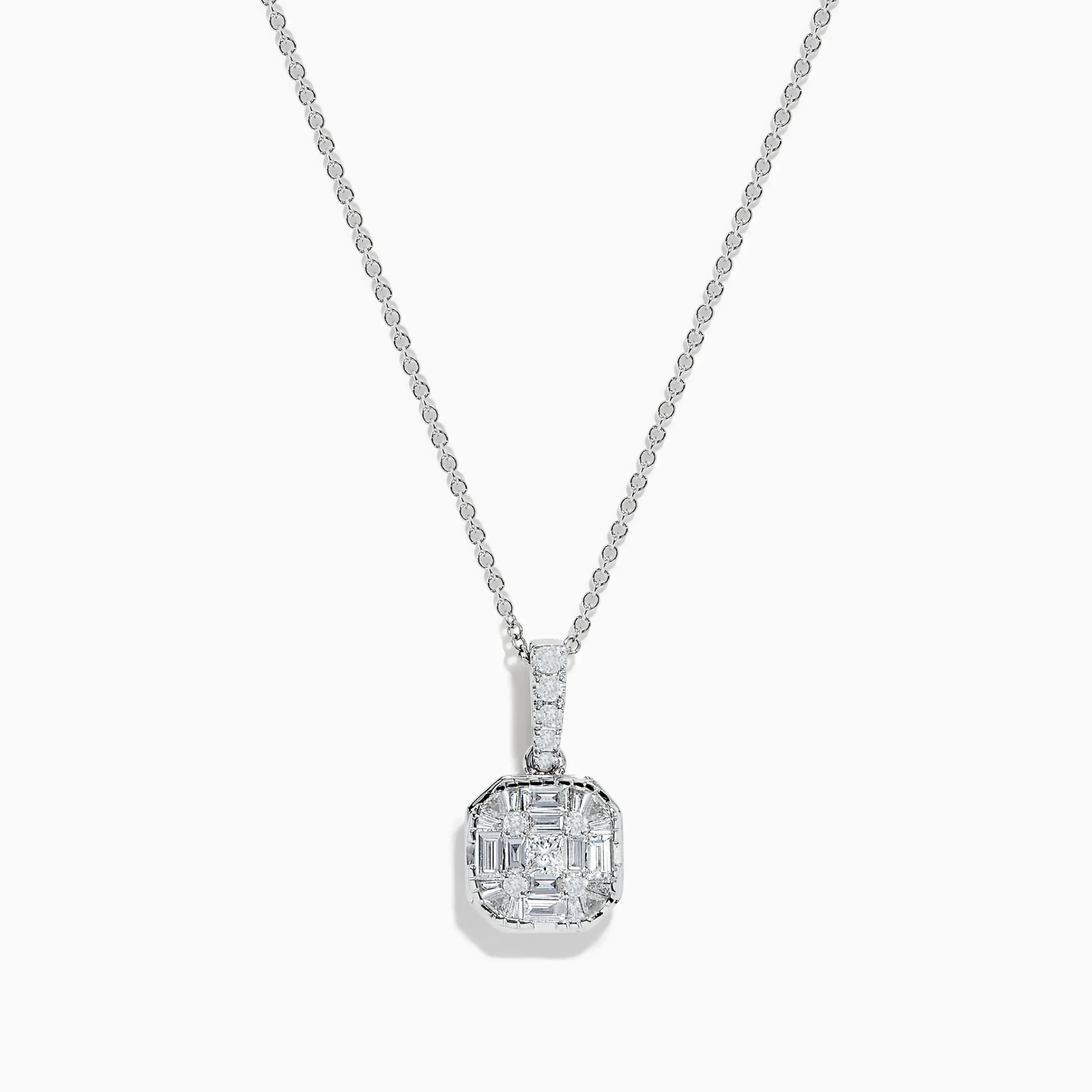 Metal:14K Gold Metal Color:WhiteStone: Baguette Diamond 0.77Classique 14K White Gold Pendant