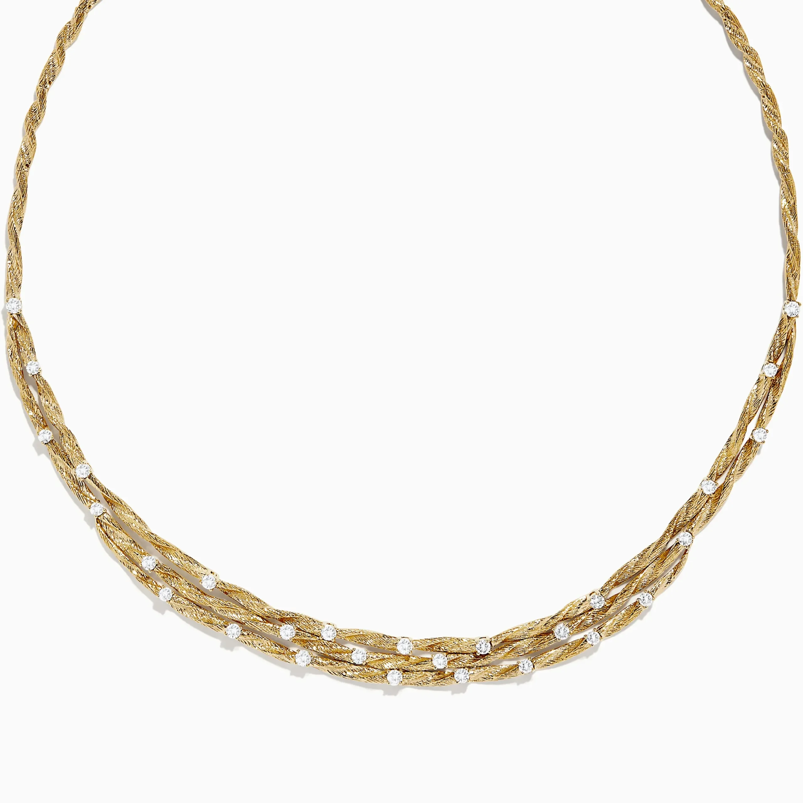 Effy D’Oro 14K Textured Yellow Gold Diamond Collar Necklace, 1.68 TCW
