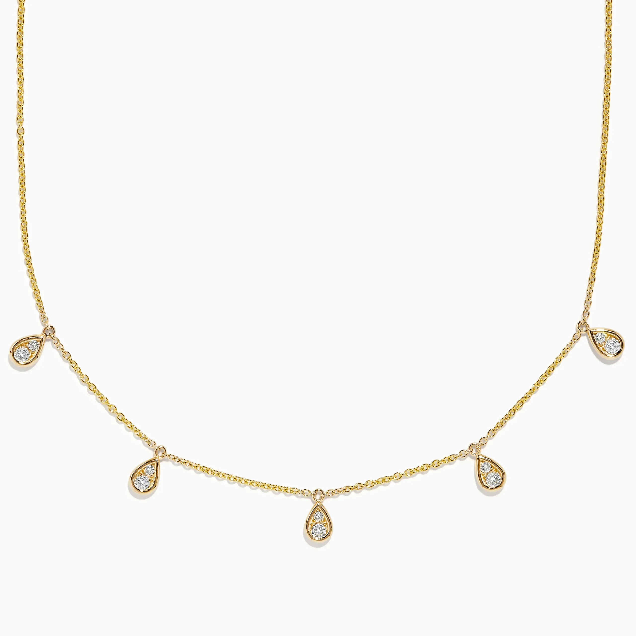Effy D’oro 14K Yellow Gold Diamond Rain Drop Station Necklace 0.49 TCW