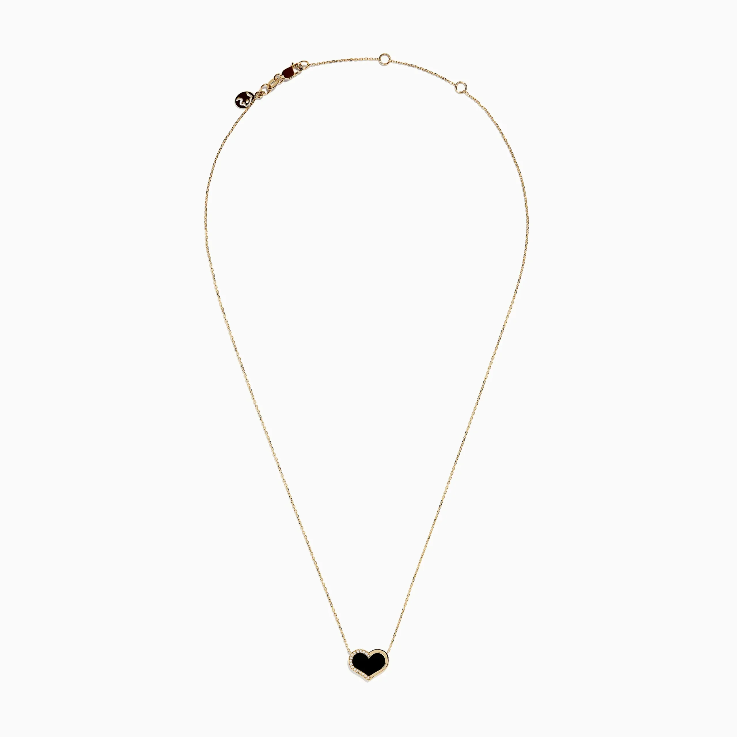 Effy Eclipse 14K Yellow Gold Onyx and Diamond Heart Necklace
