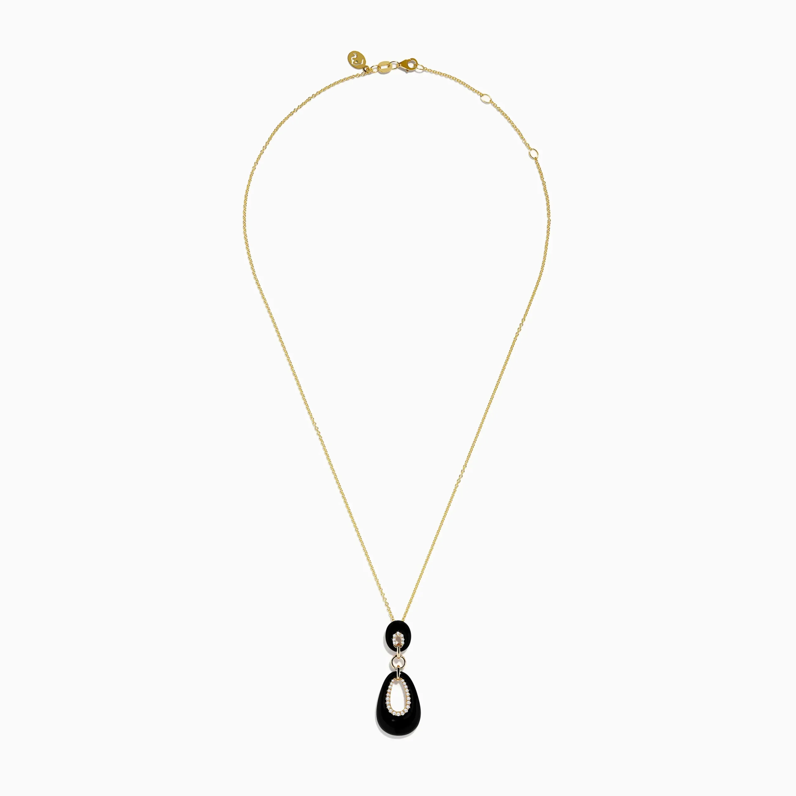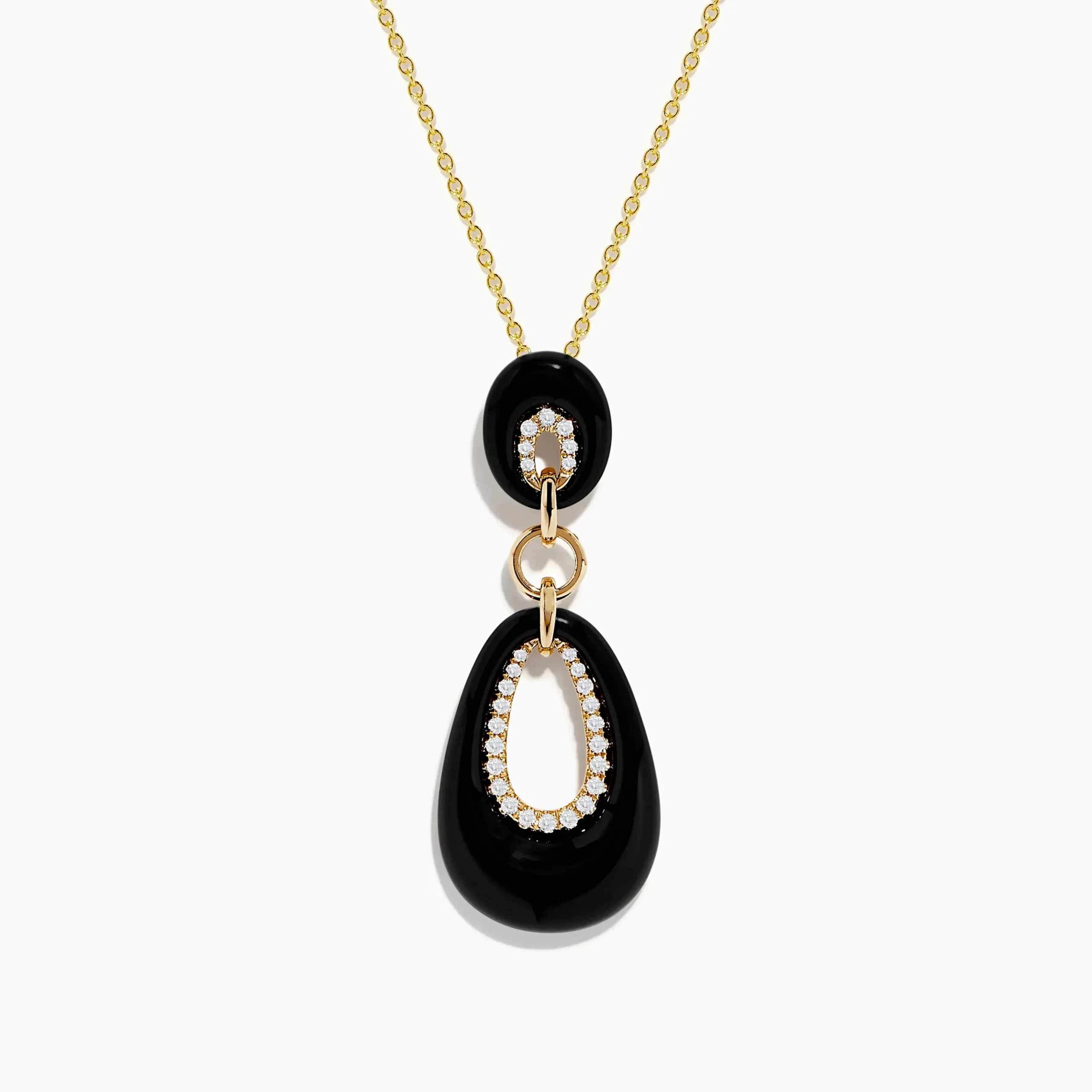 Eclipse 14K Yellow Gold Onyx and Diamond Pendant