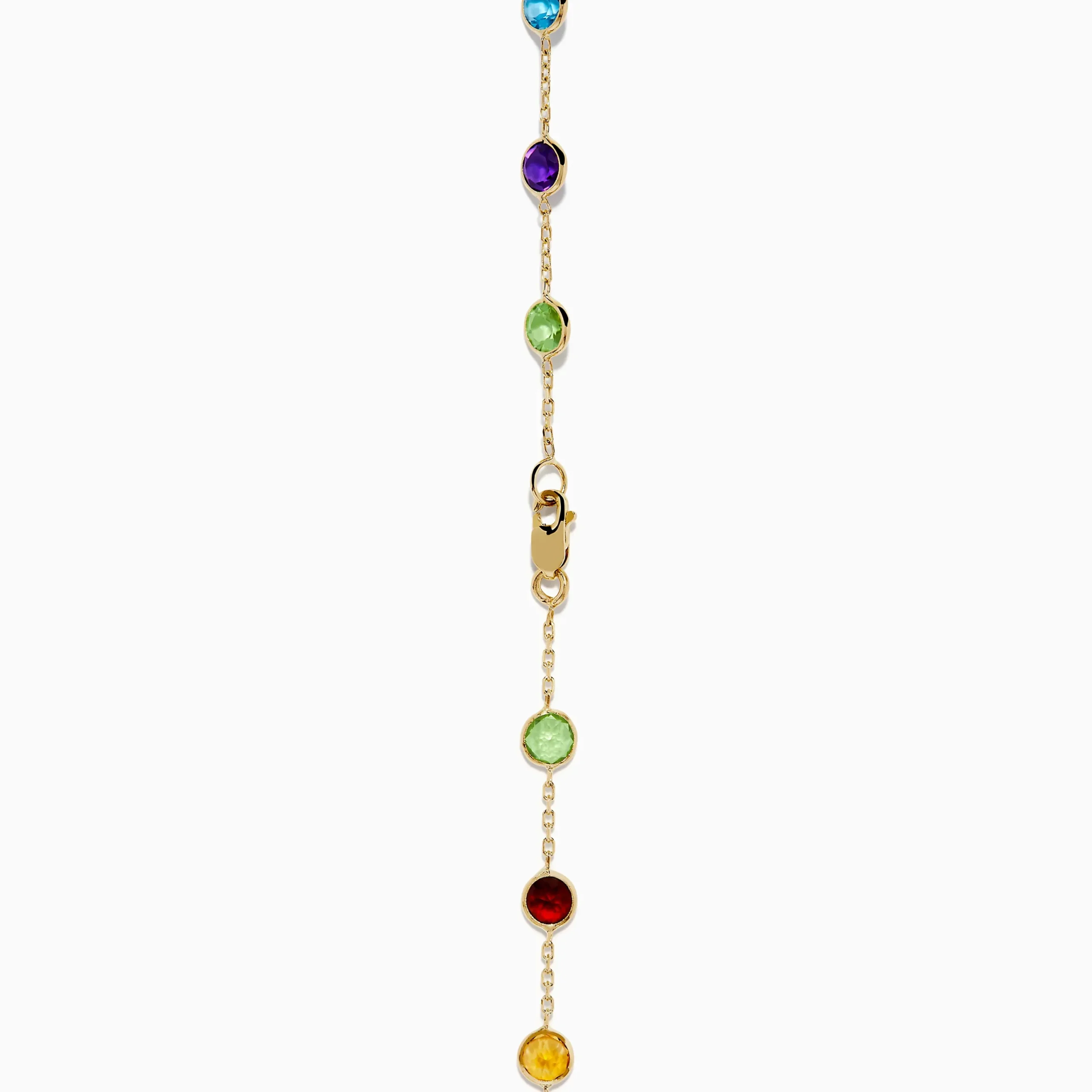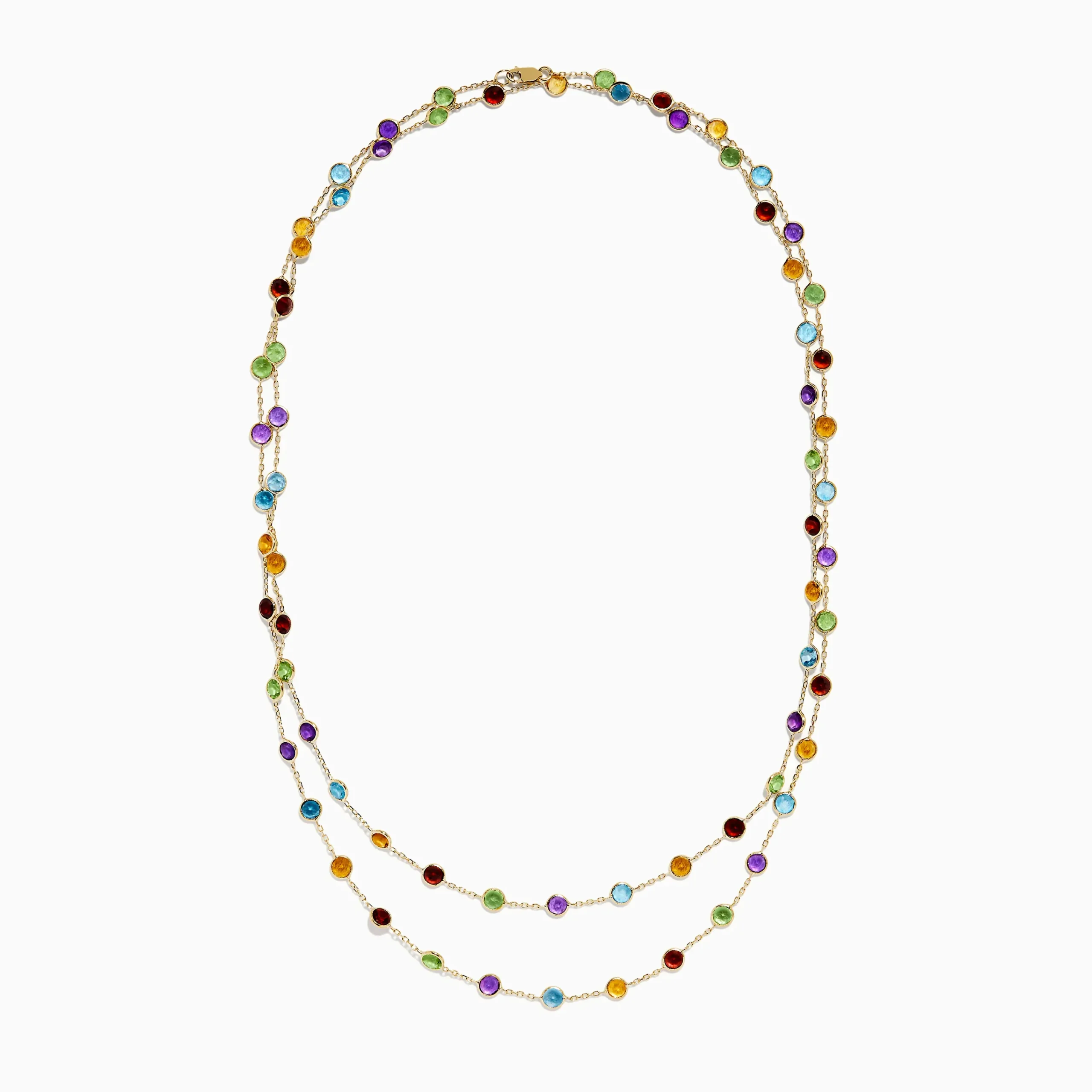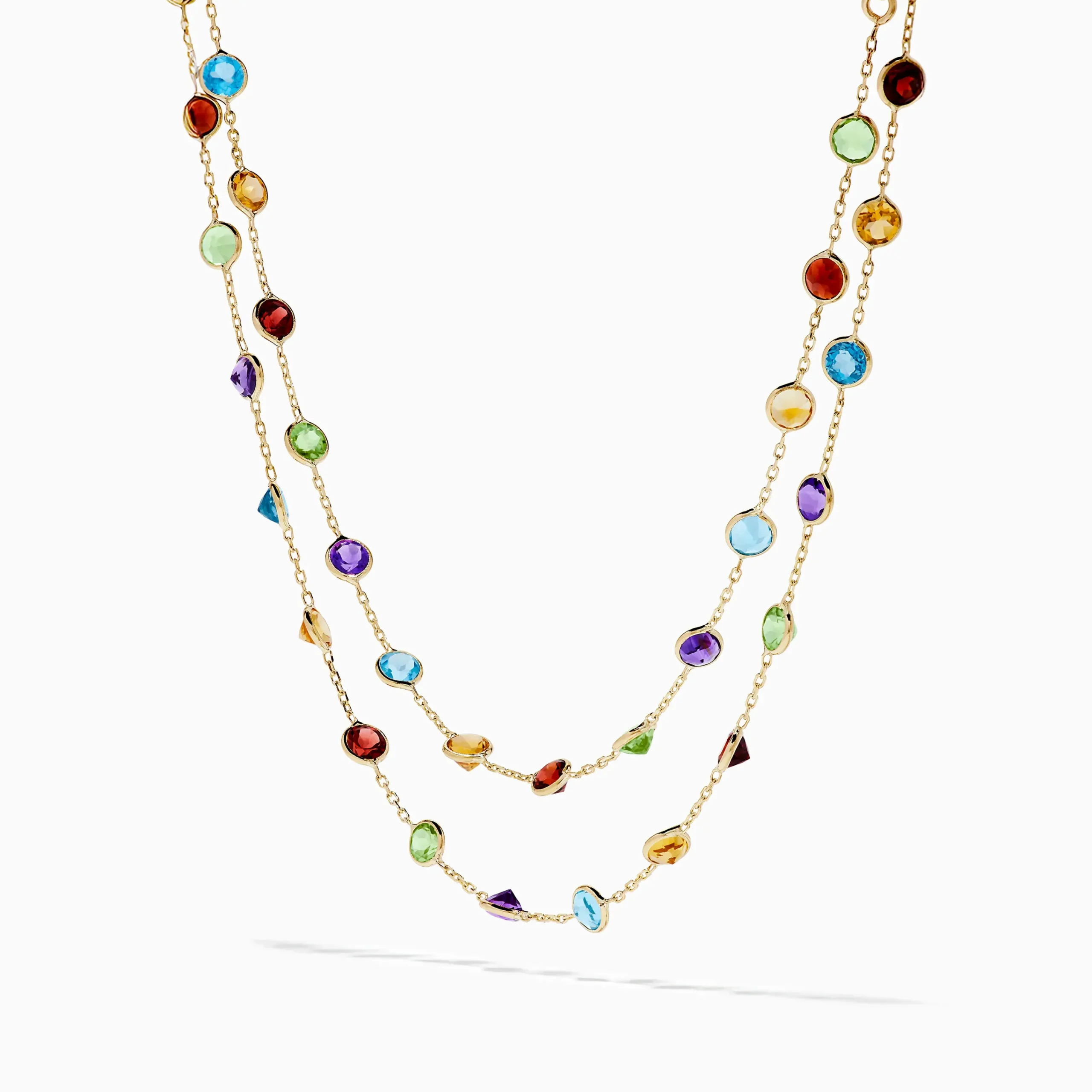 Metal:14K Gold Metal Color:YellowStone: Round Multi Color 21.2Mosaic 14K Yellow Gold Multi Color Gemstone and Diamond Ne…