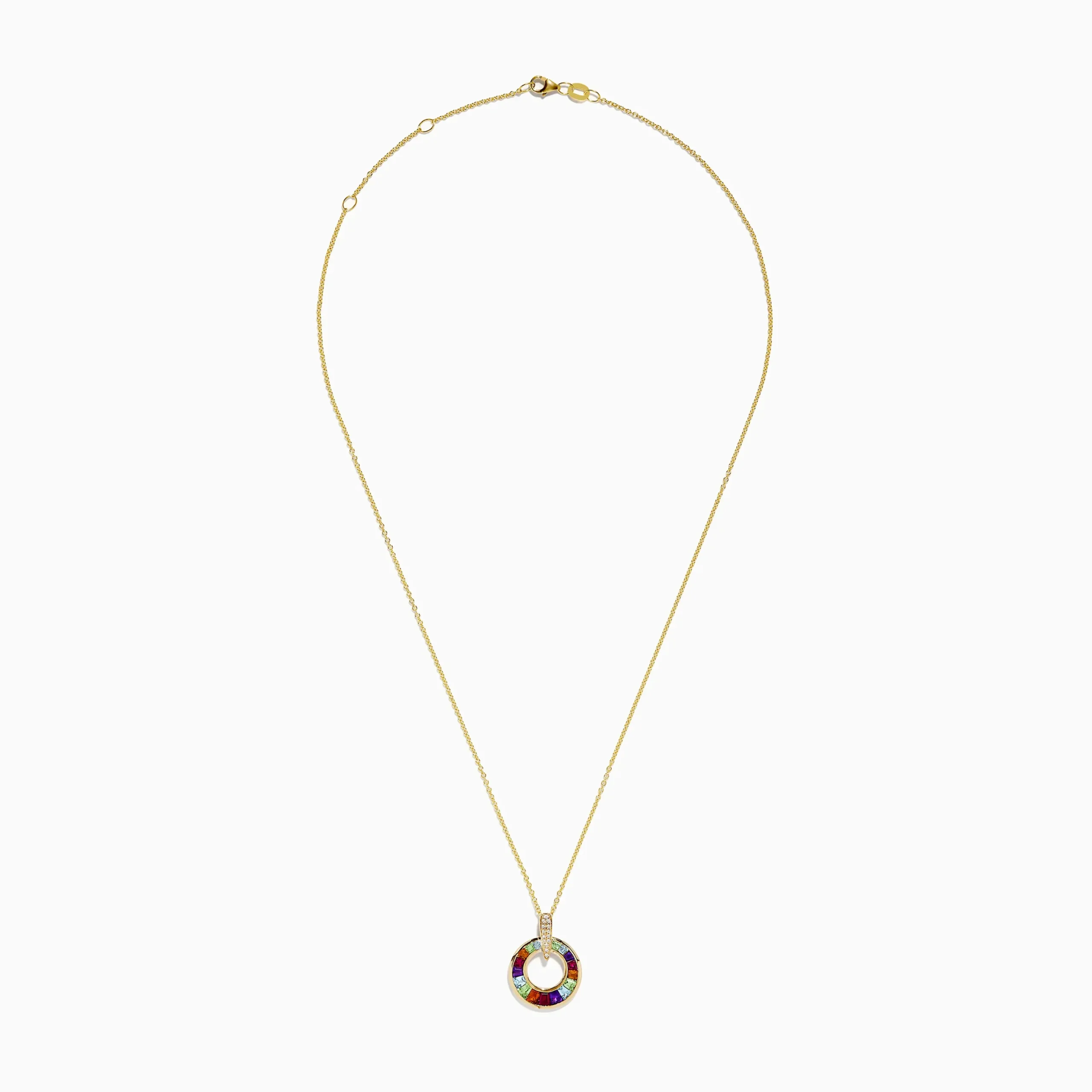 Mosaic 14K Yellow Gold Multi Gemstone and Diamond Pendant