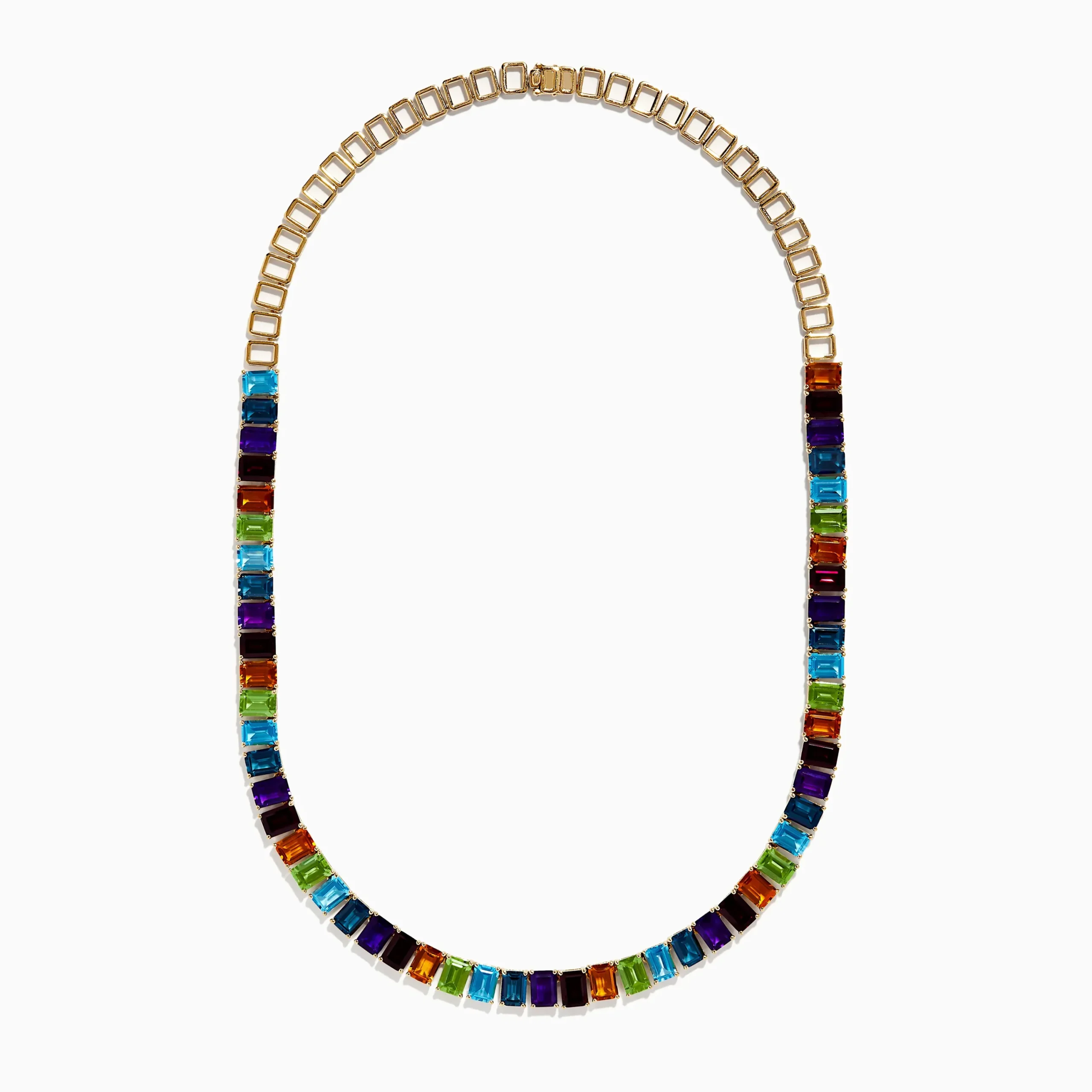 Metal:14K Gold Metal Color:YellowStone: Emerald Cut Multi Color 57Mosaic 14K Yellow Gold Multi Gemstone Necklace