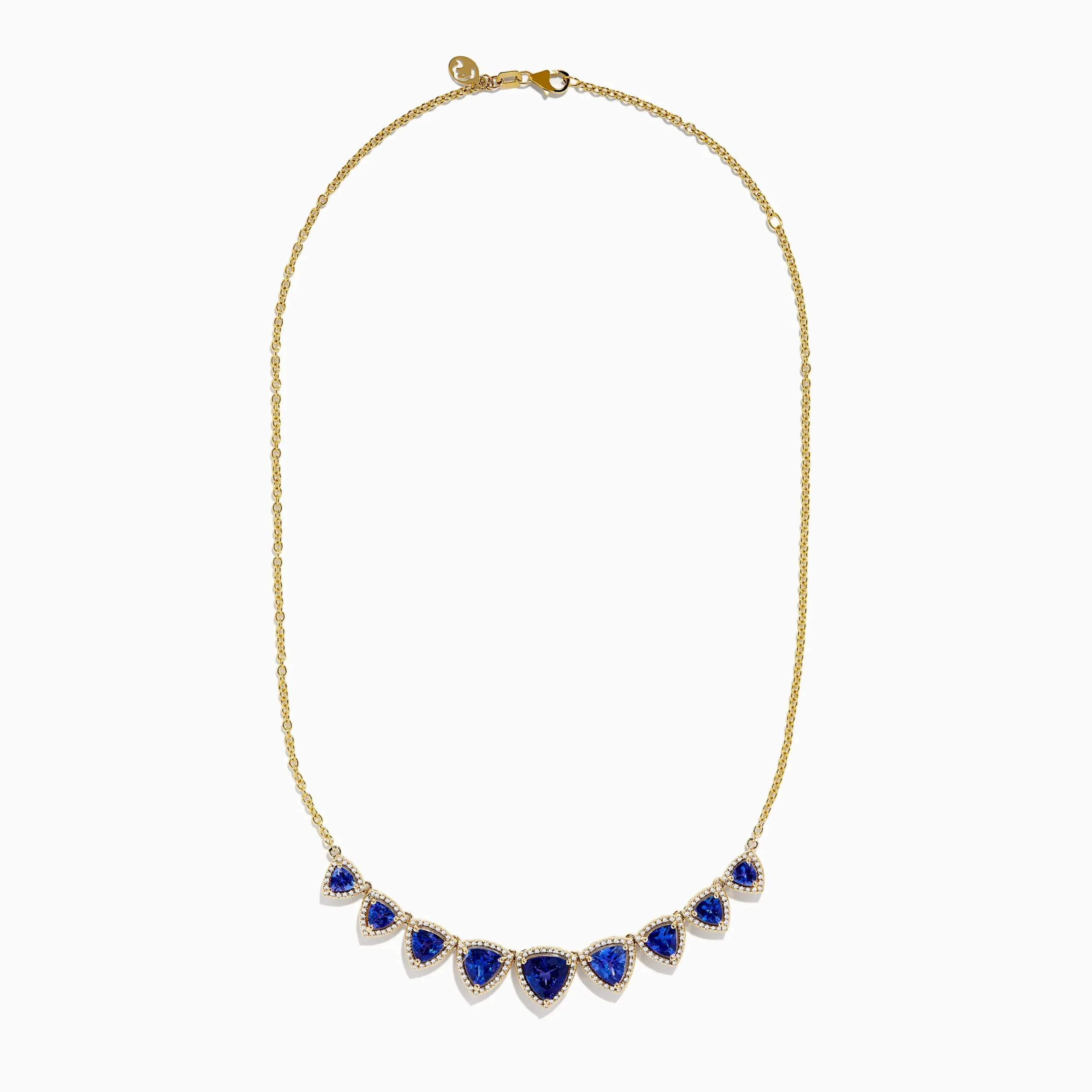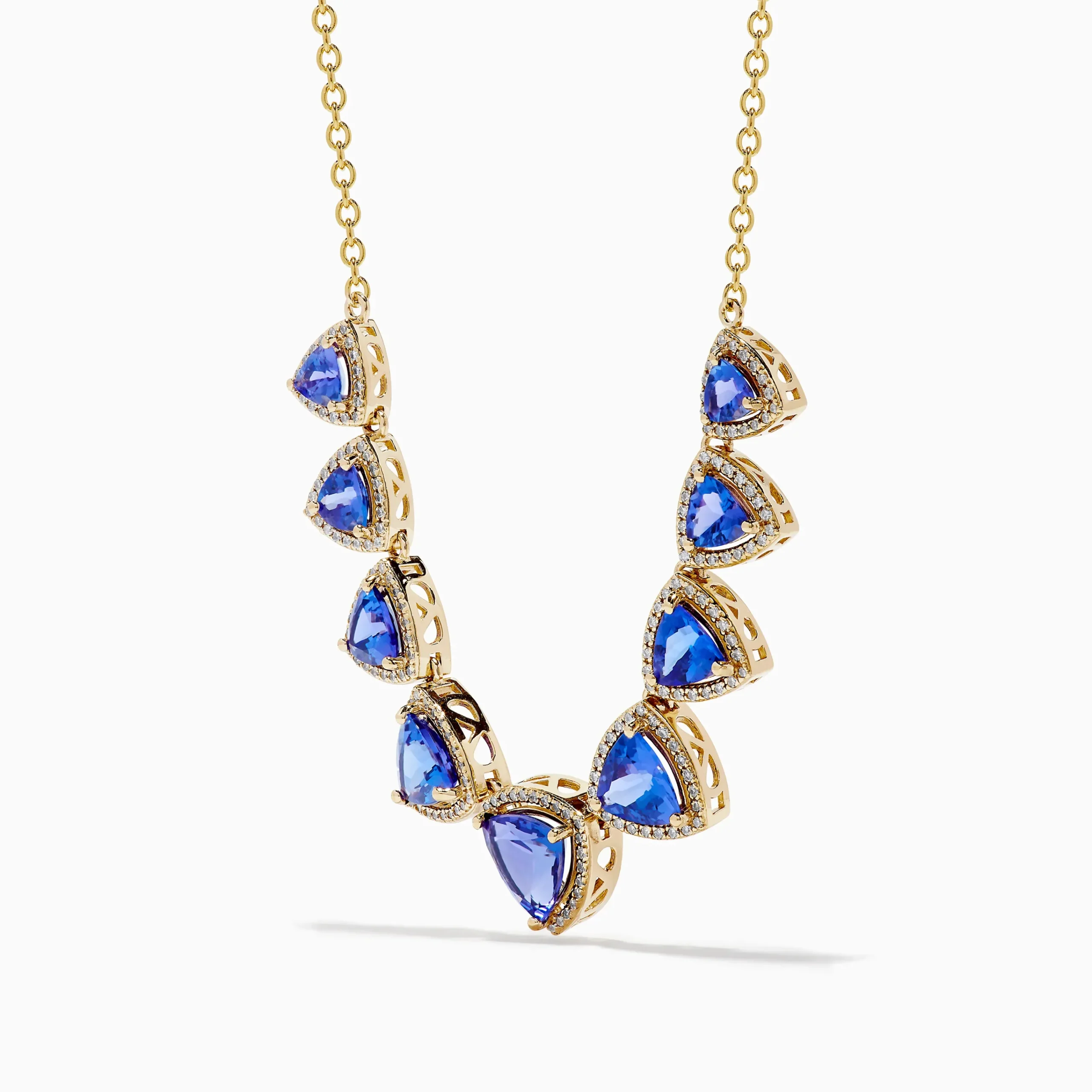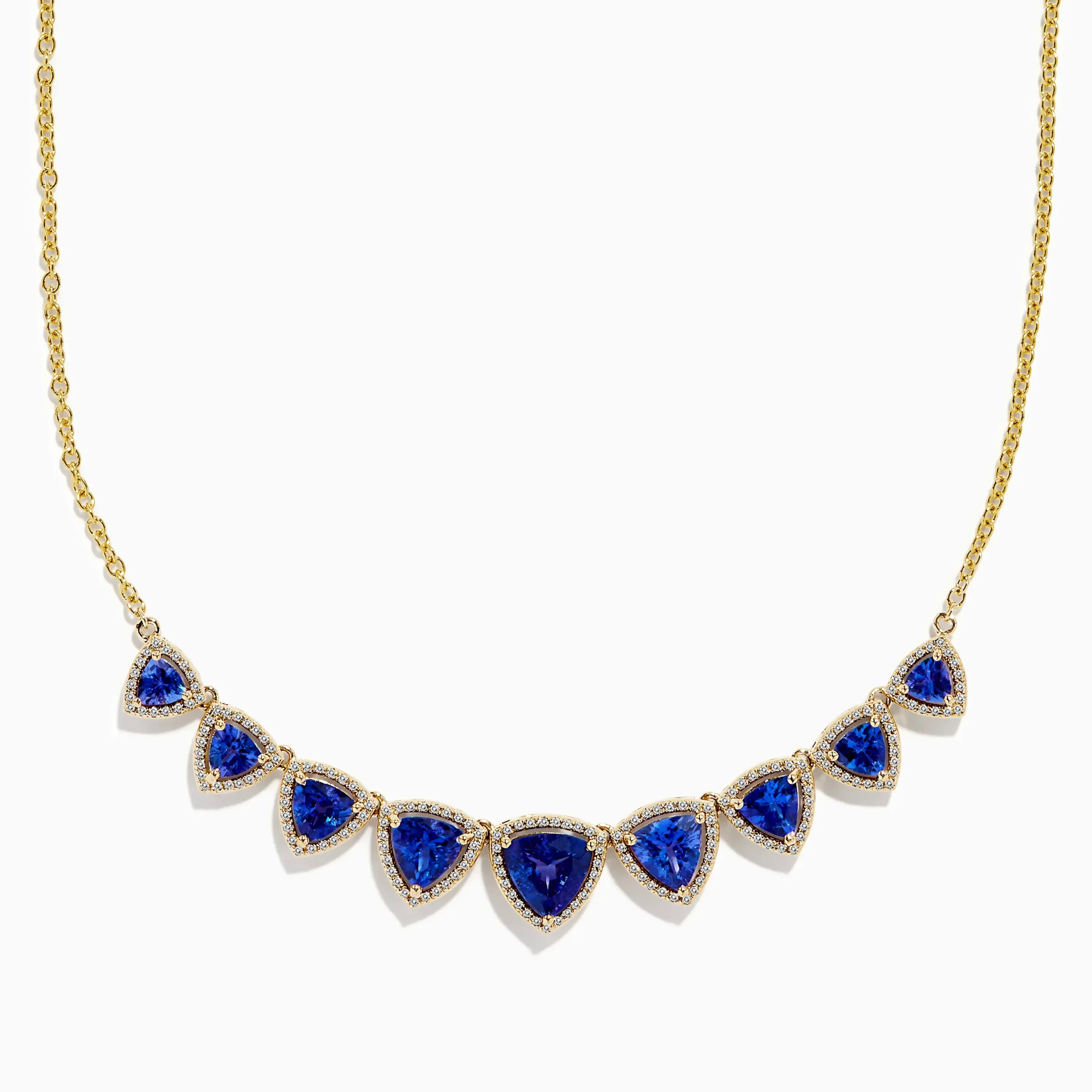 Nahla 14K Yellow Gold Trillion Tanzanite and Diamond Necklace