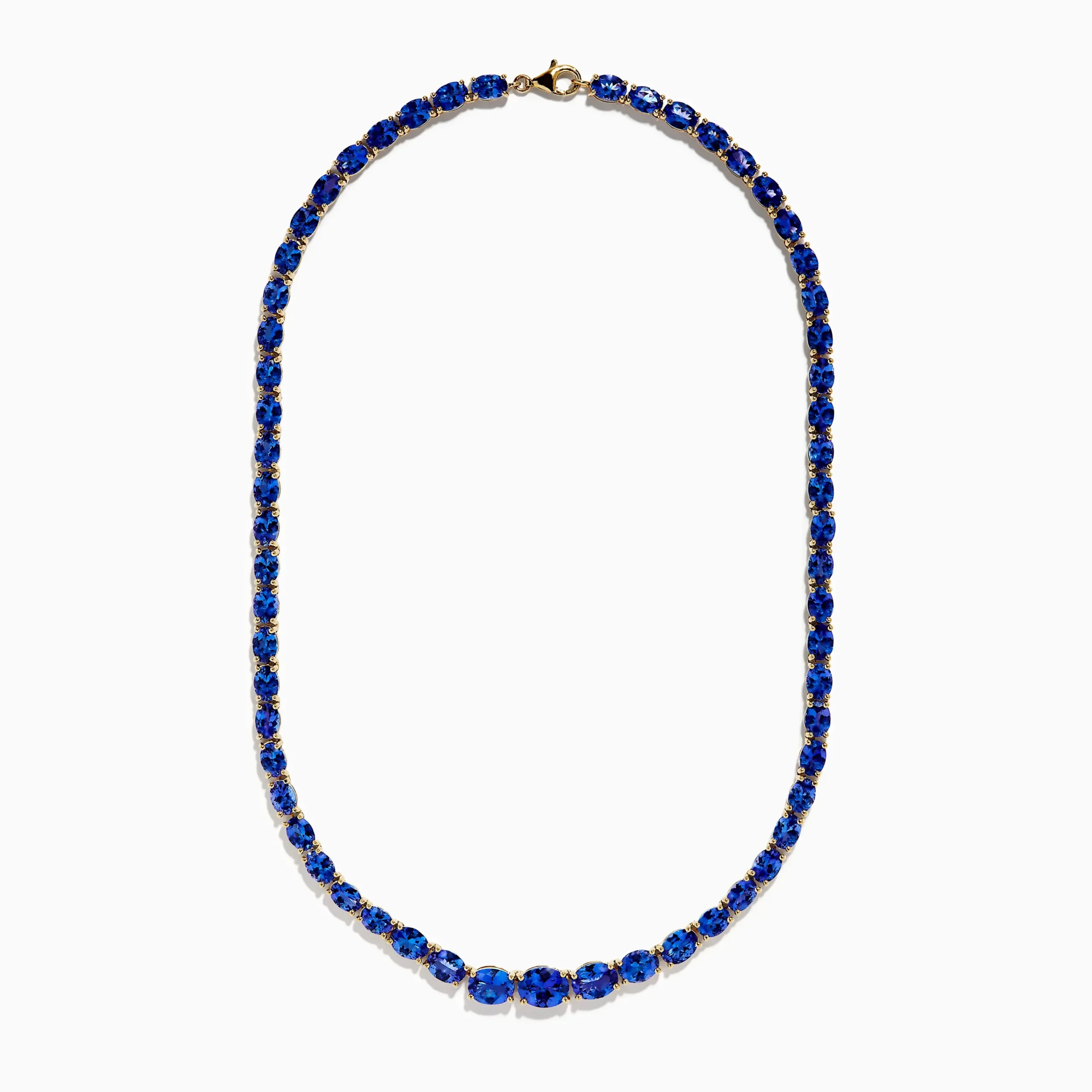 Metal:14K Gold Metal Color:YellowStone: Oval Tanzanite 52.58Nahla Siri 14K Yellow Gold Tanzanite Graduated Tennis Neckla…