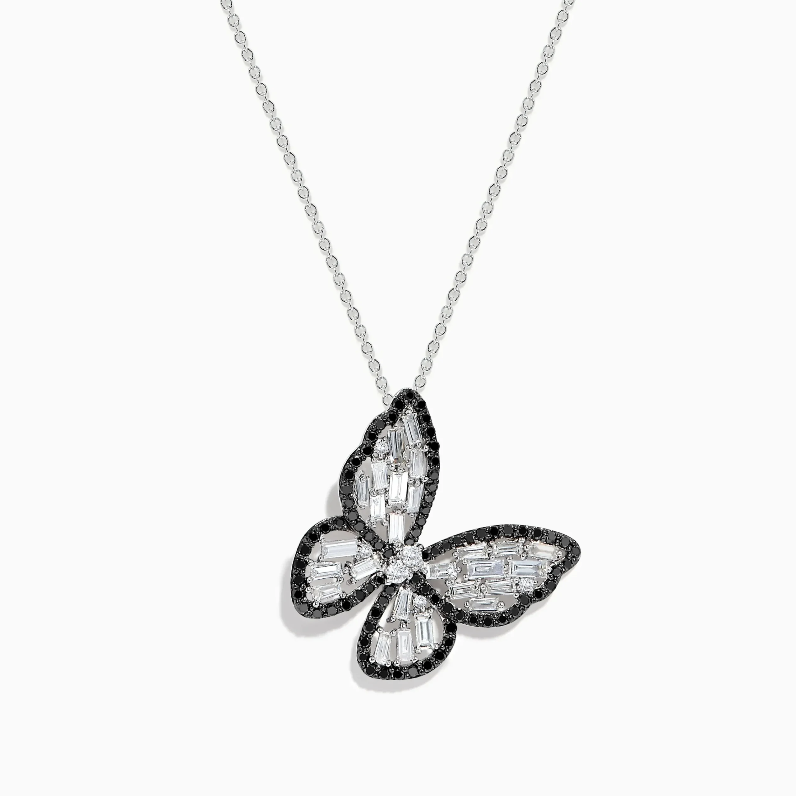 Effy Nature 14K White Gold Black and White Diamond Butterfly Pendant