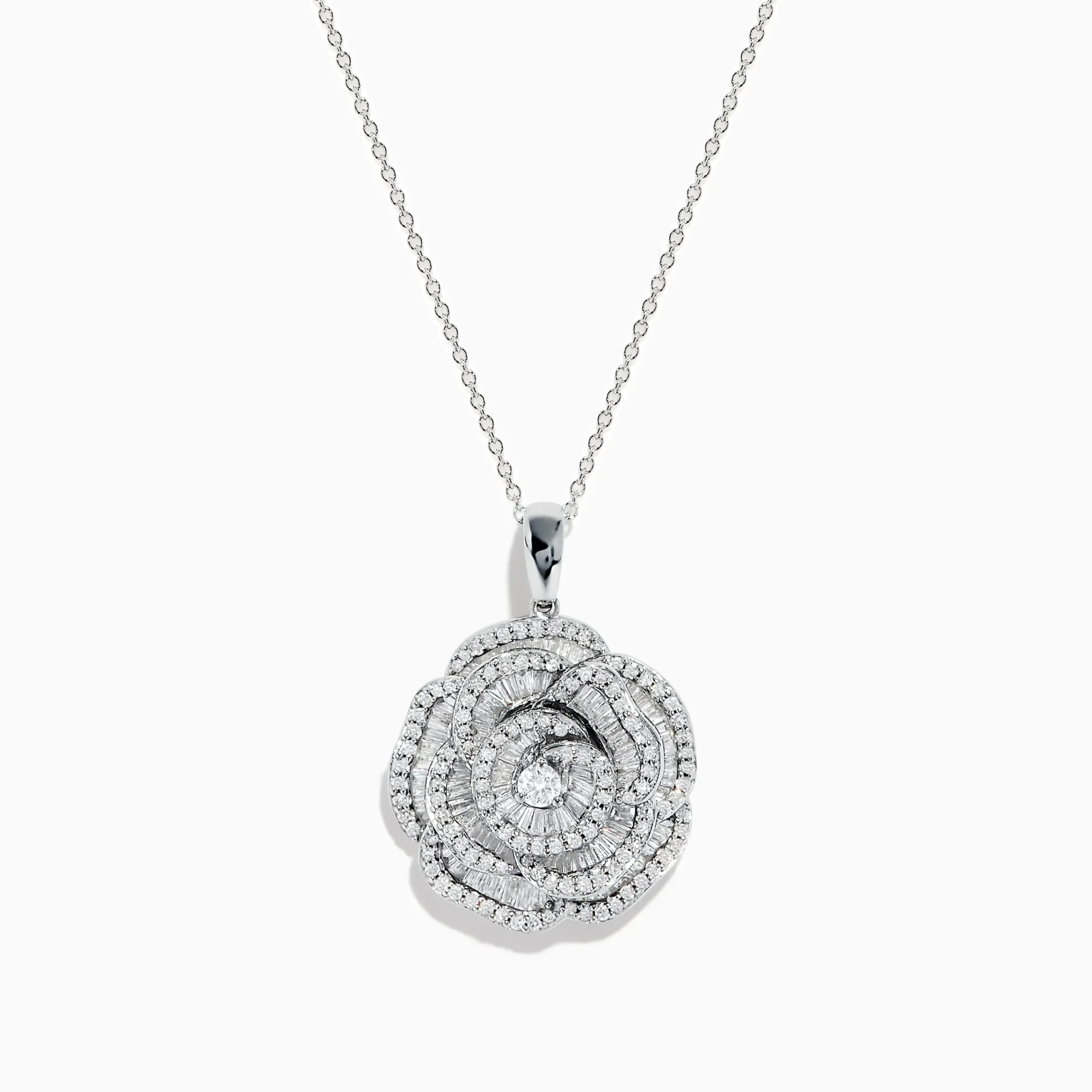 Metal:14K Gold Metal Color:WhiteStone: Multi Shape Diamond 1.38Effy Nature 14K White Gold Diamond Flower Pendant