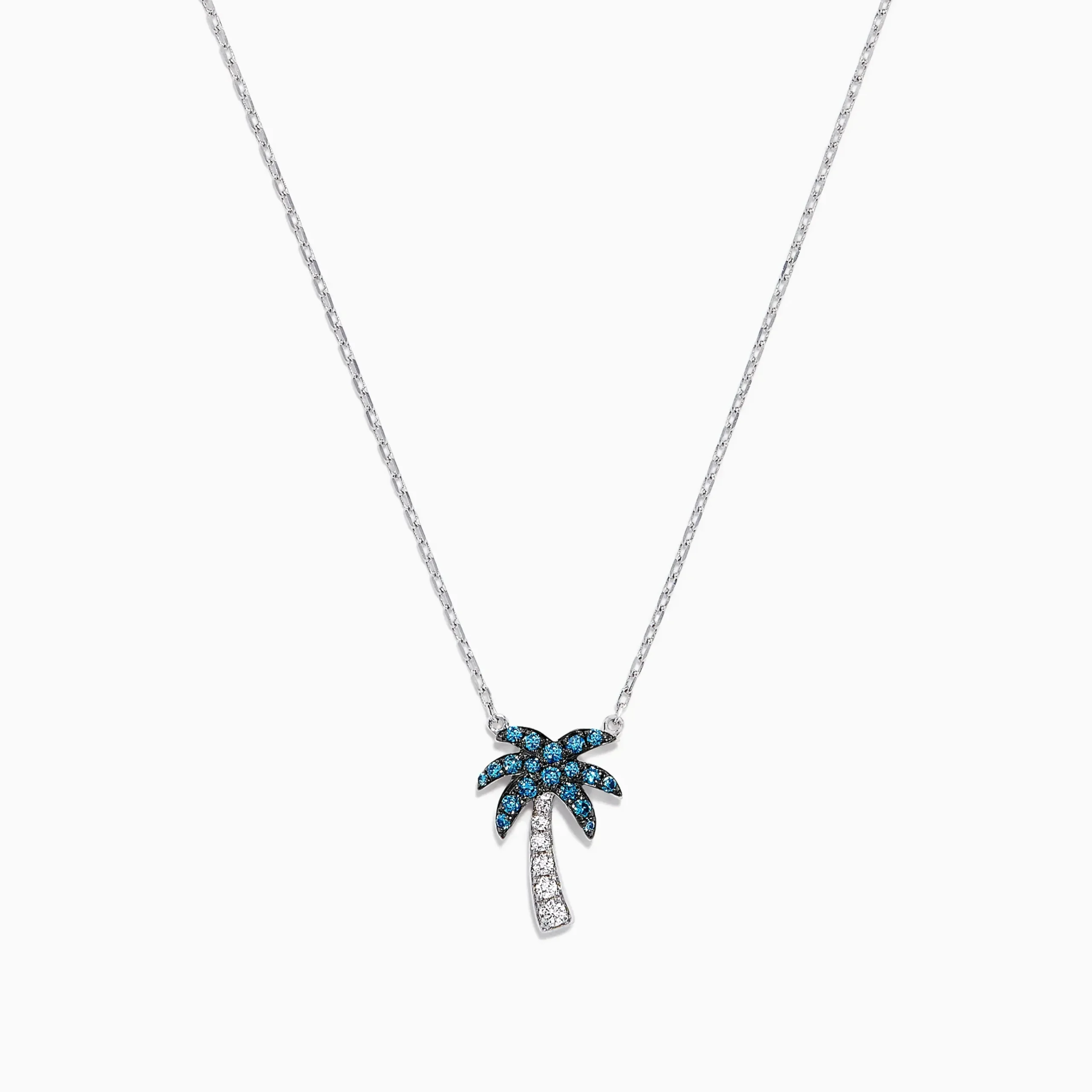Effy Novelty 14K Gold Blue & White Diamond Palm Tree Necklace, 0.25 TCW