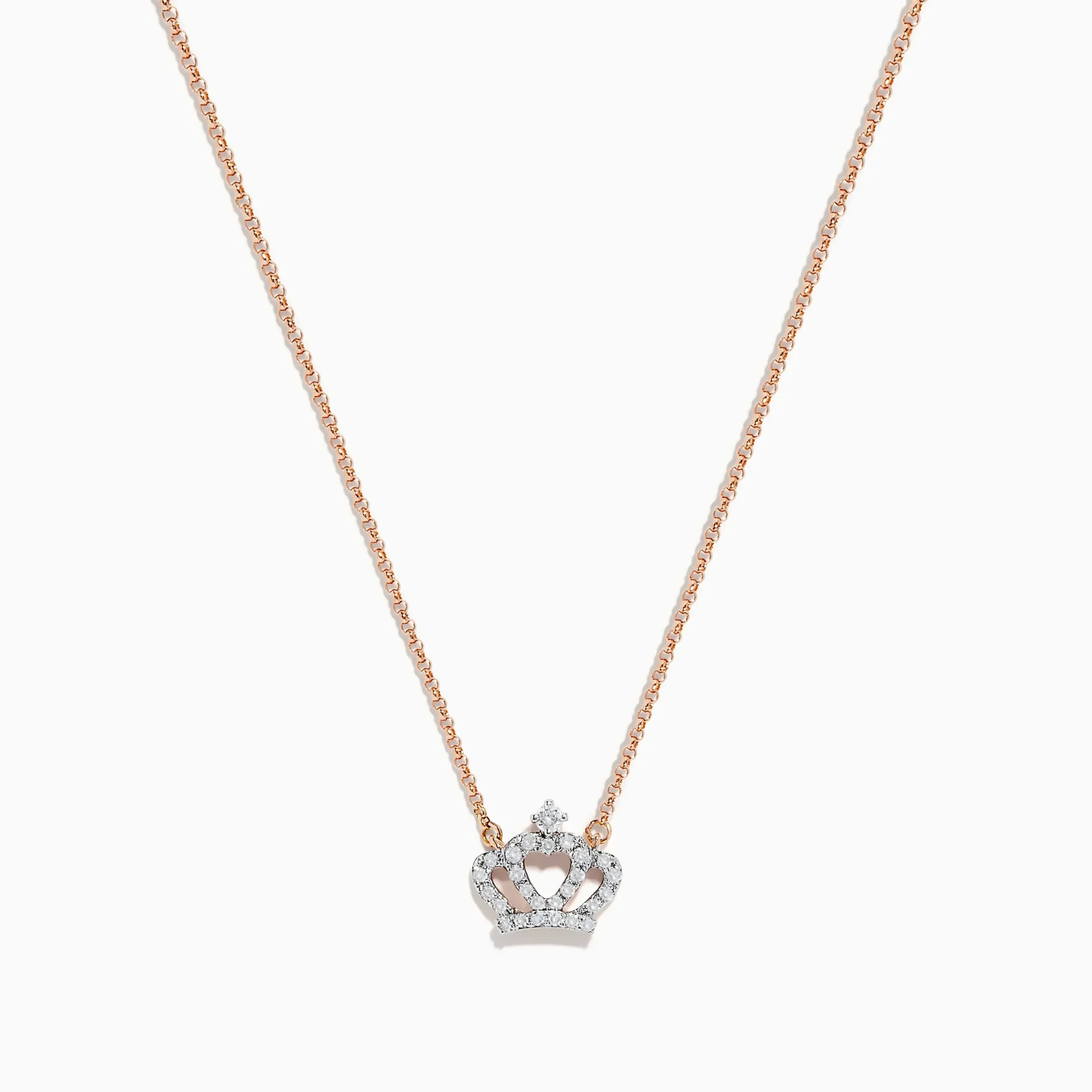 Novelty 14K Rose Gold Diamond Crown Necklace