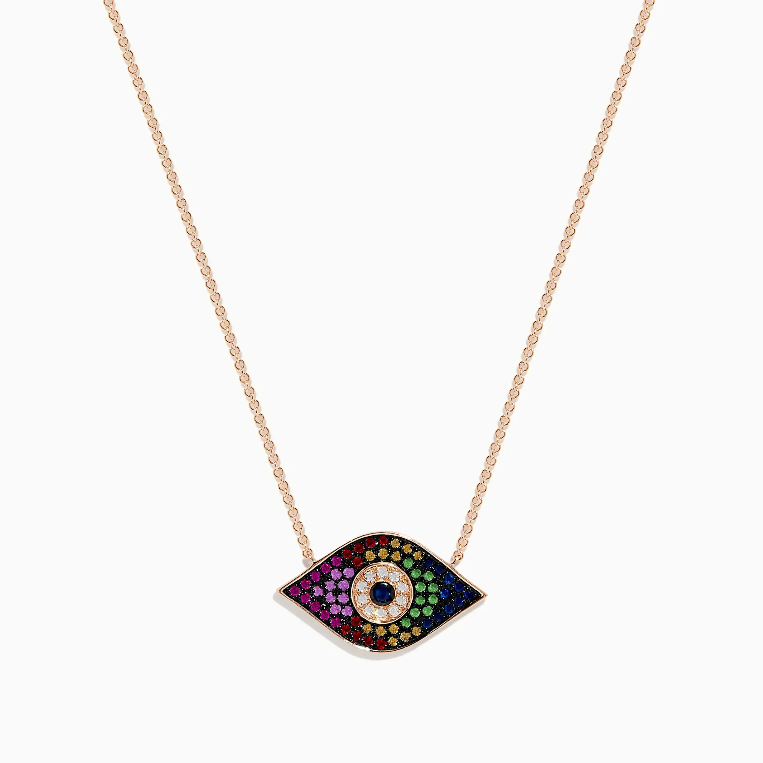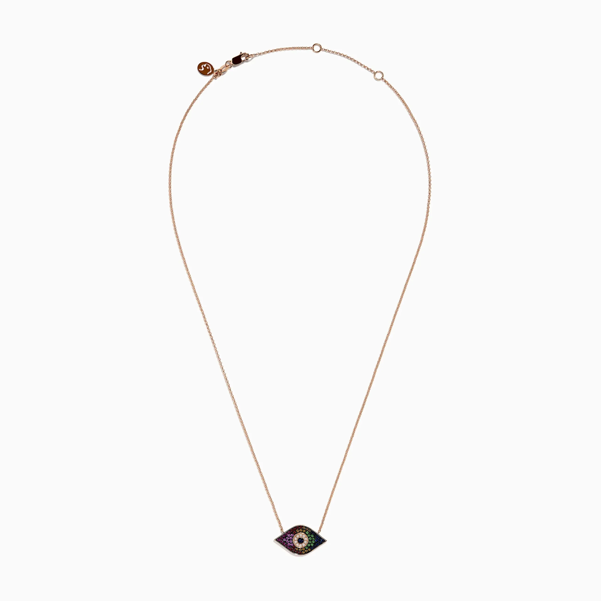Effy Novelty 14K Rose Gold Multi Sapphire & Diamond Evil Eye Necklace