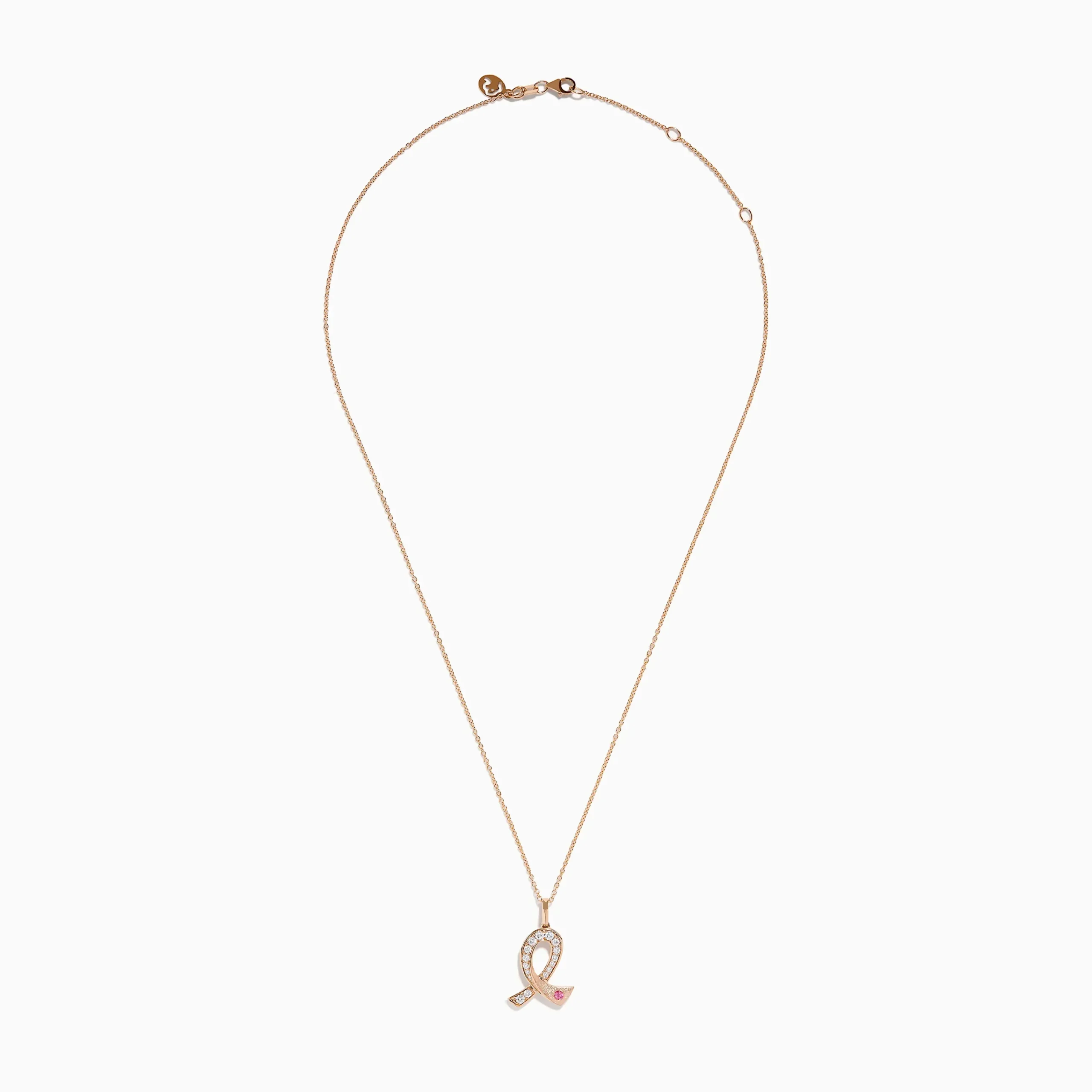 Novelty 14K Rose Gold Pink Sapphire & Diamond Pink Ribbon Pendant