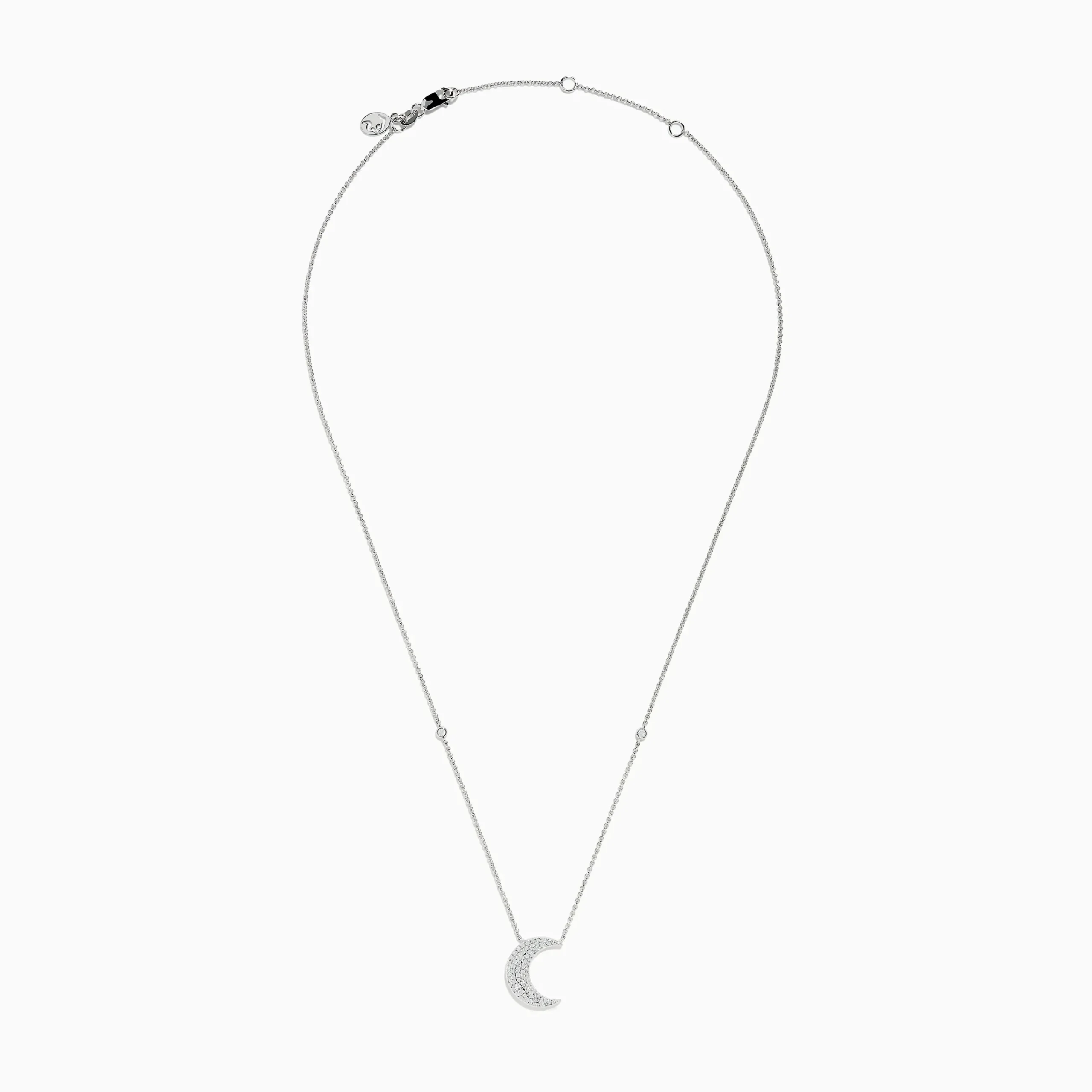Novelty 14K White Gold Diamond Crescent Moon Necklace