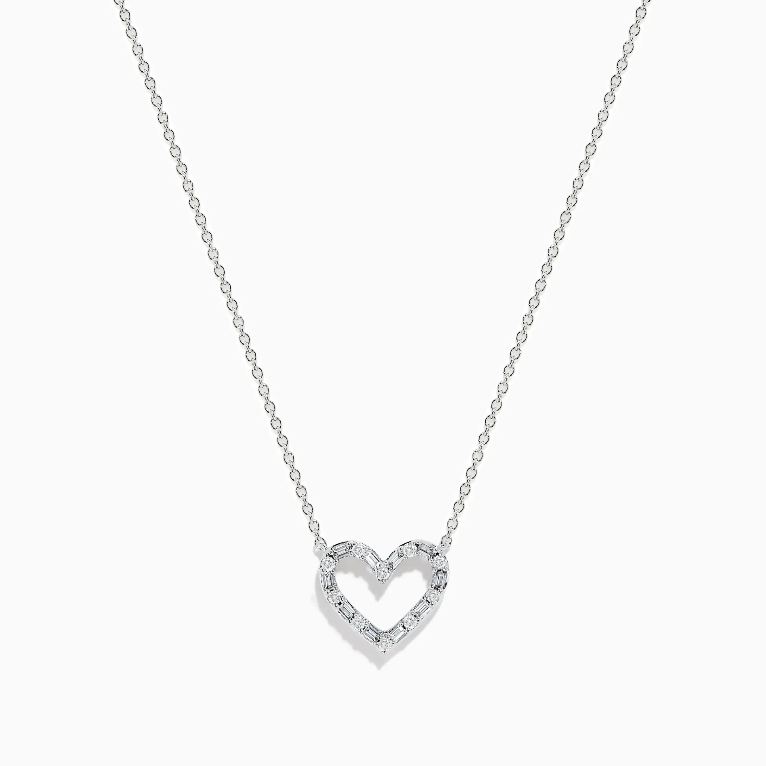 Metal:14K Gold Metal Color:WhiteStone: Multi Shape Diamond 0.24Novelty 14K White Gold Diamond Heart Necklace