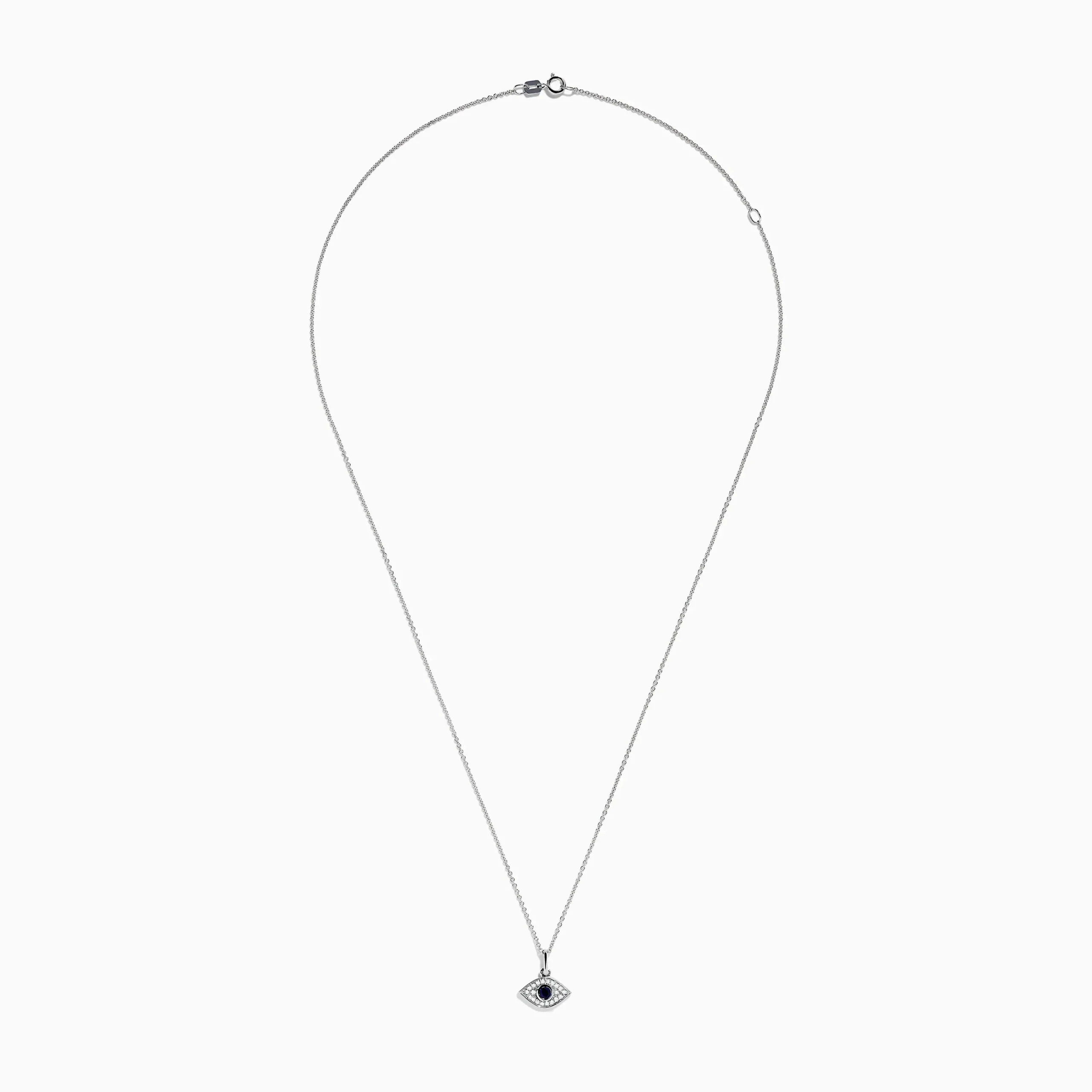 Novelty 14K White Gold Sapphire and Diamond Evil Eye Pendant