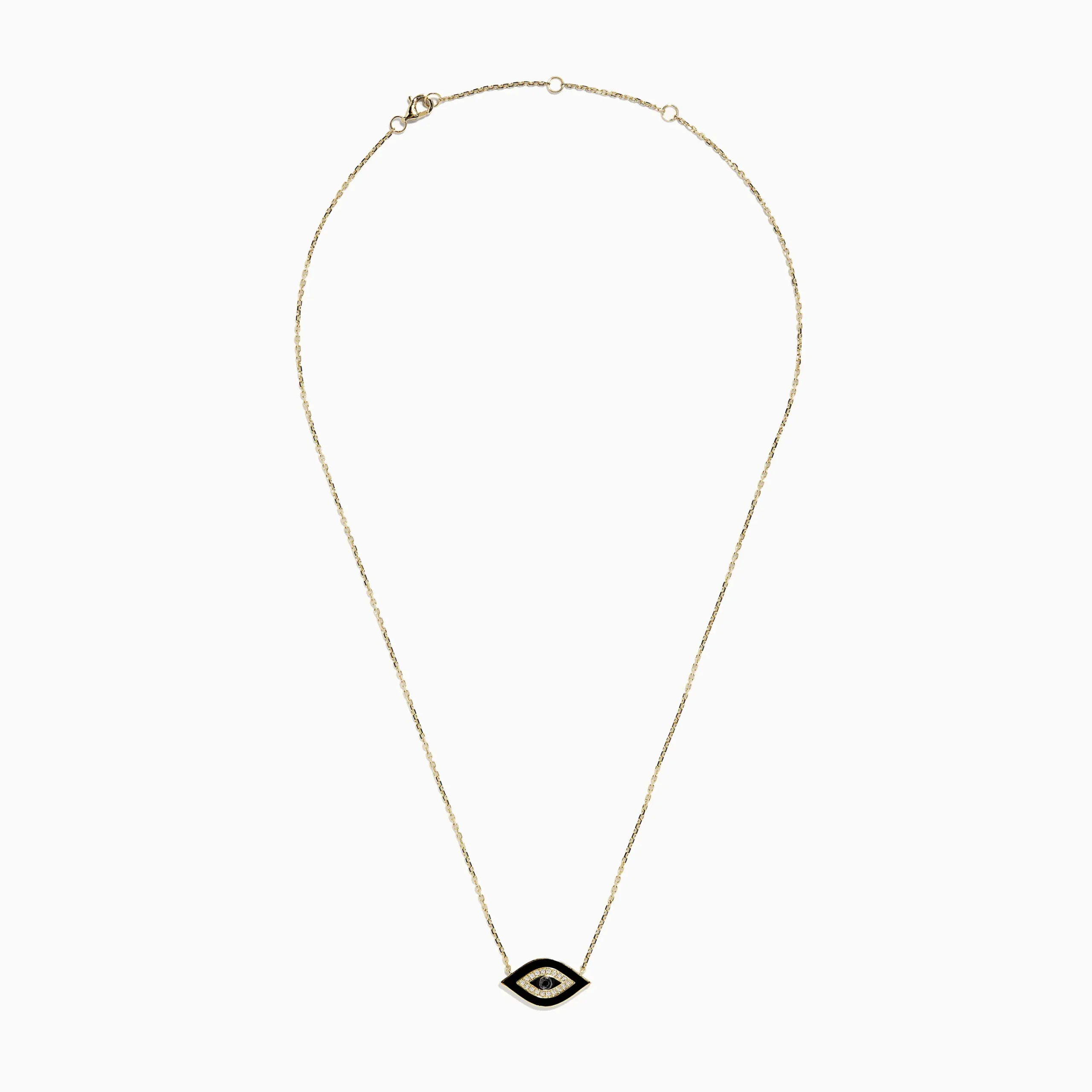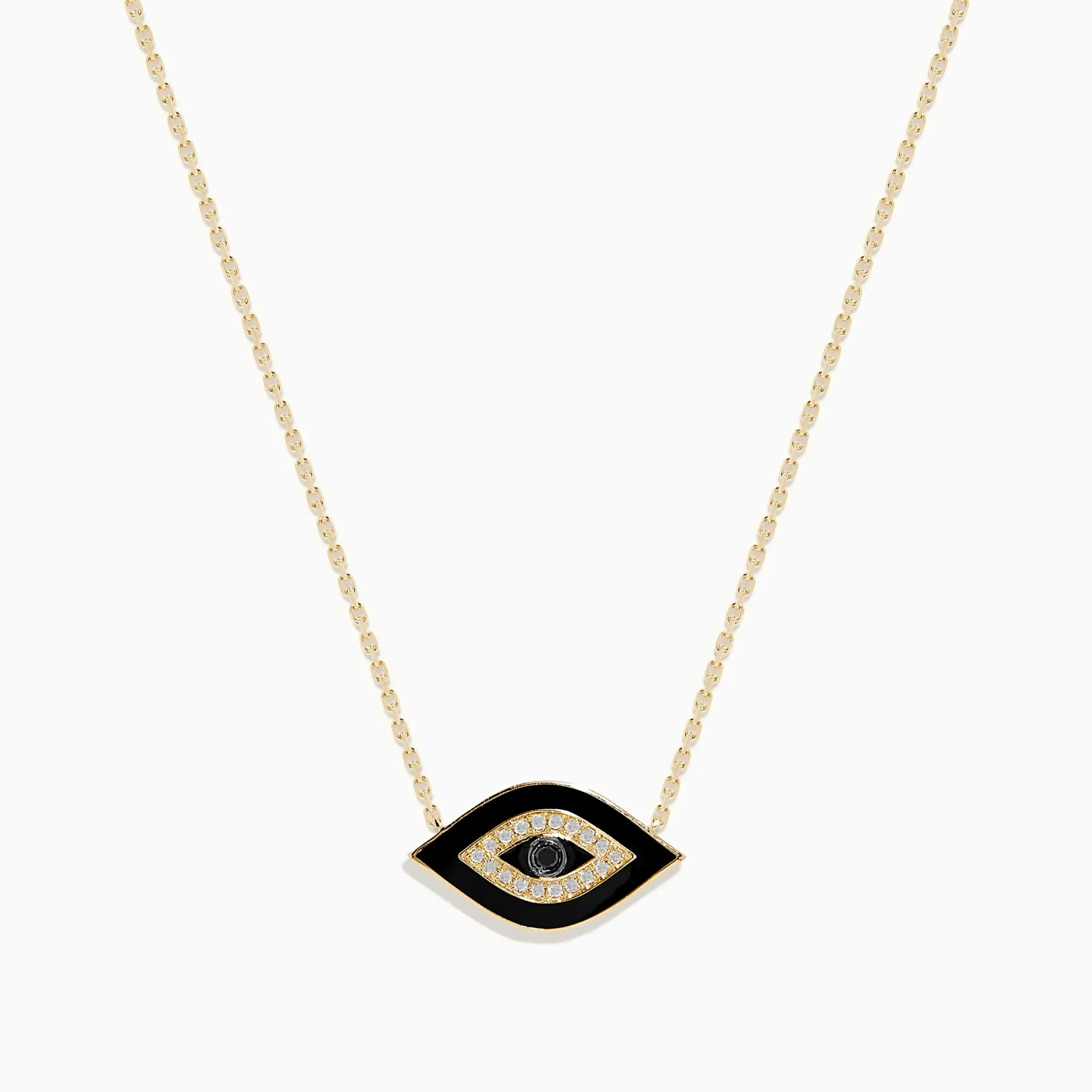 Effy Novelty 14K Yellow Gold Black and White Diamond Evil Eye Necklace