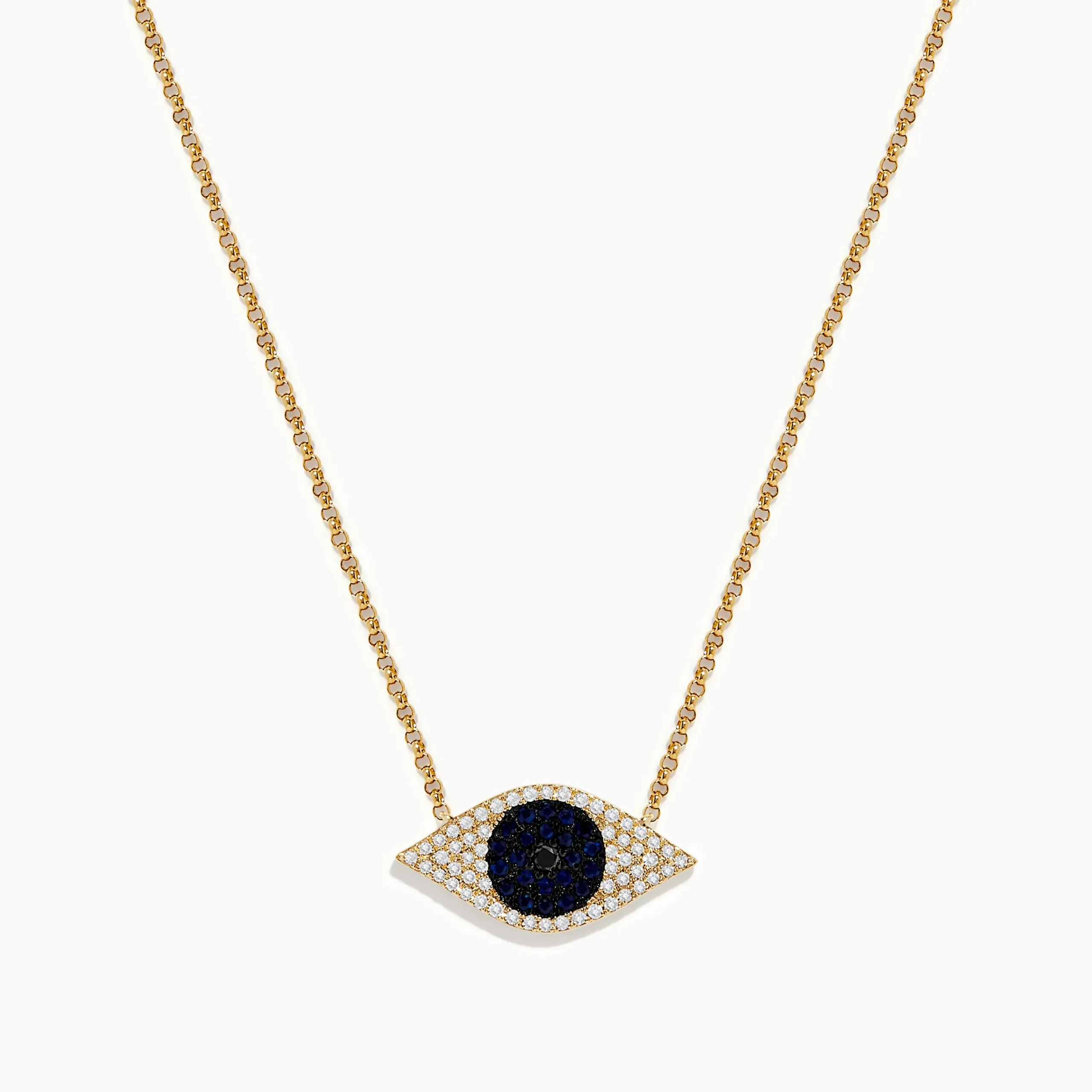 Effy Novelty 14K Yellow Gold Blue Sapphire and Diamond Evil Eye Necklace