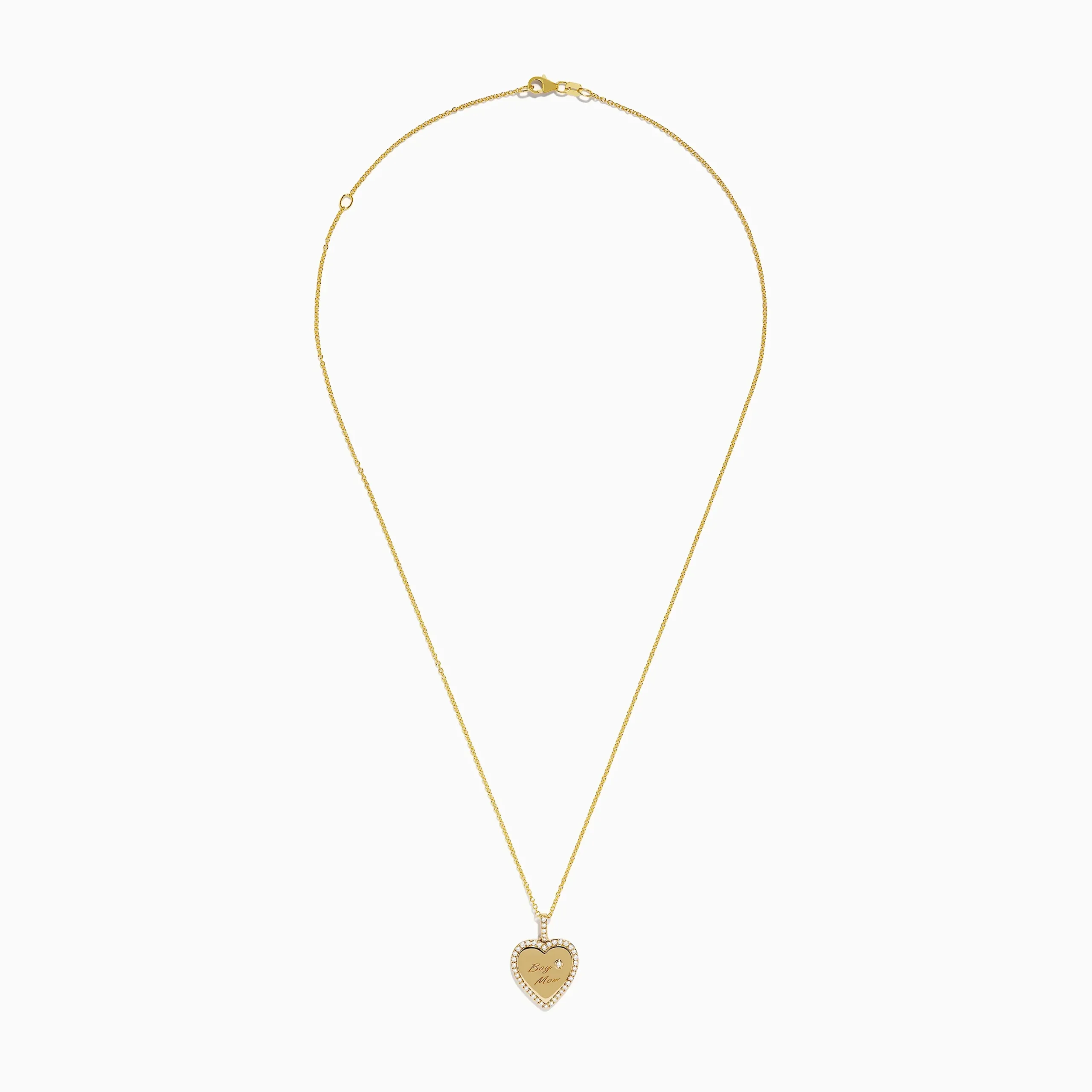 Metal:14K Gold Metal Color:YellowStone: Round Diamond 0.19Effy Novelty 14k Yellow Gold “Boy Mom” Diamond Heart Pendant