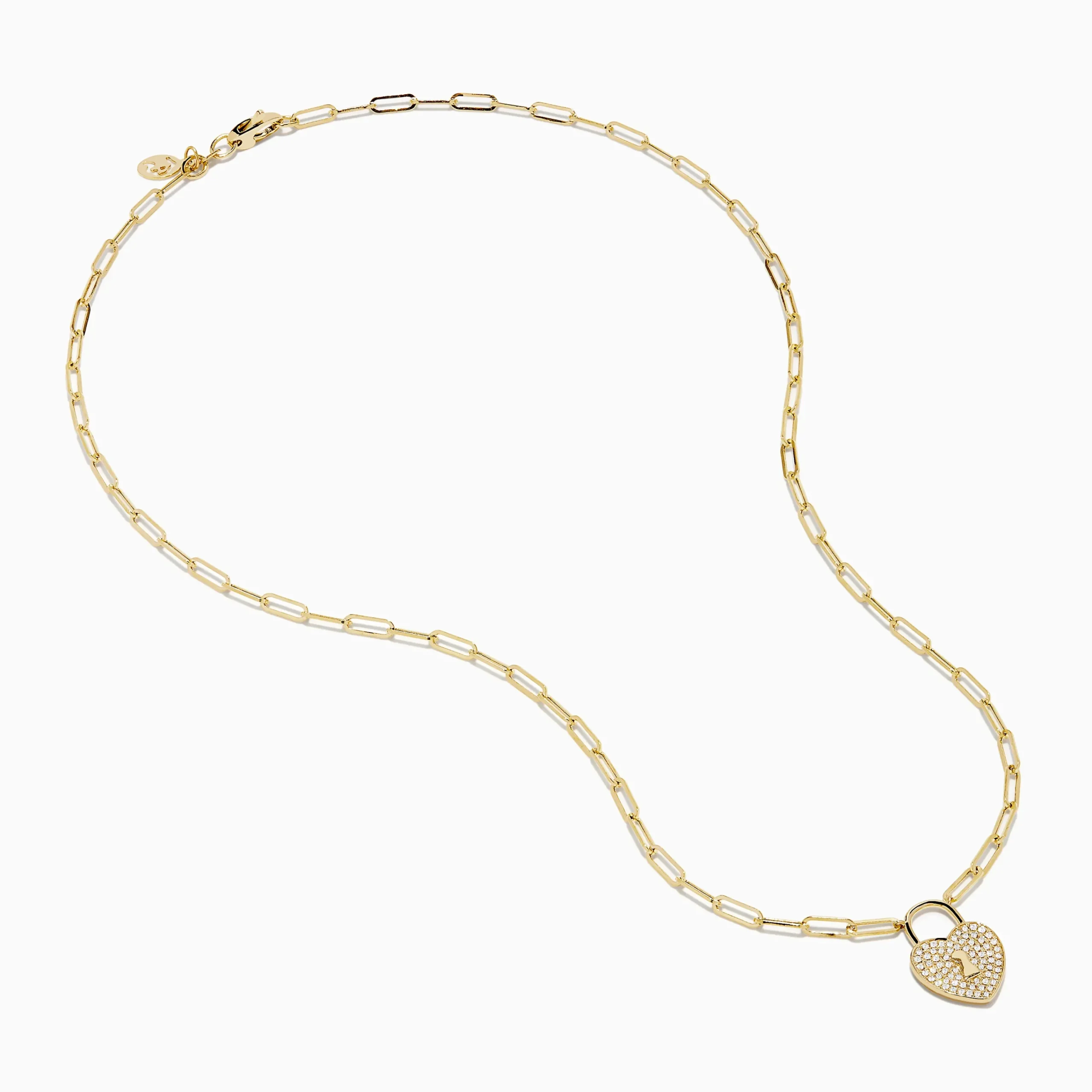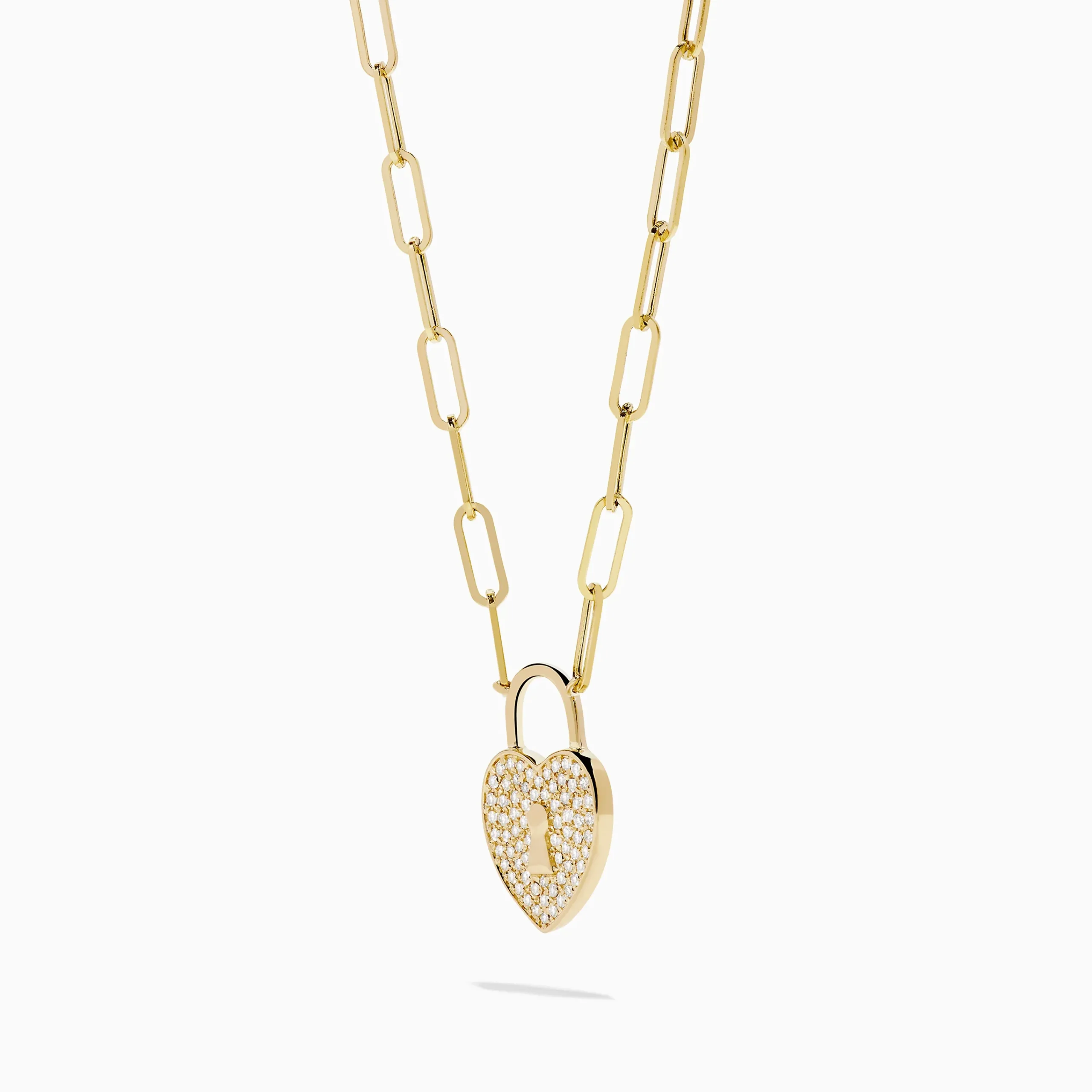 Novelty 14K Yellow Gold Diamond Heart Lock Pendant