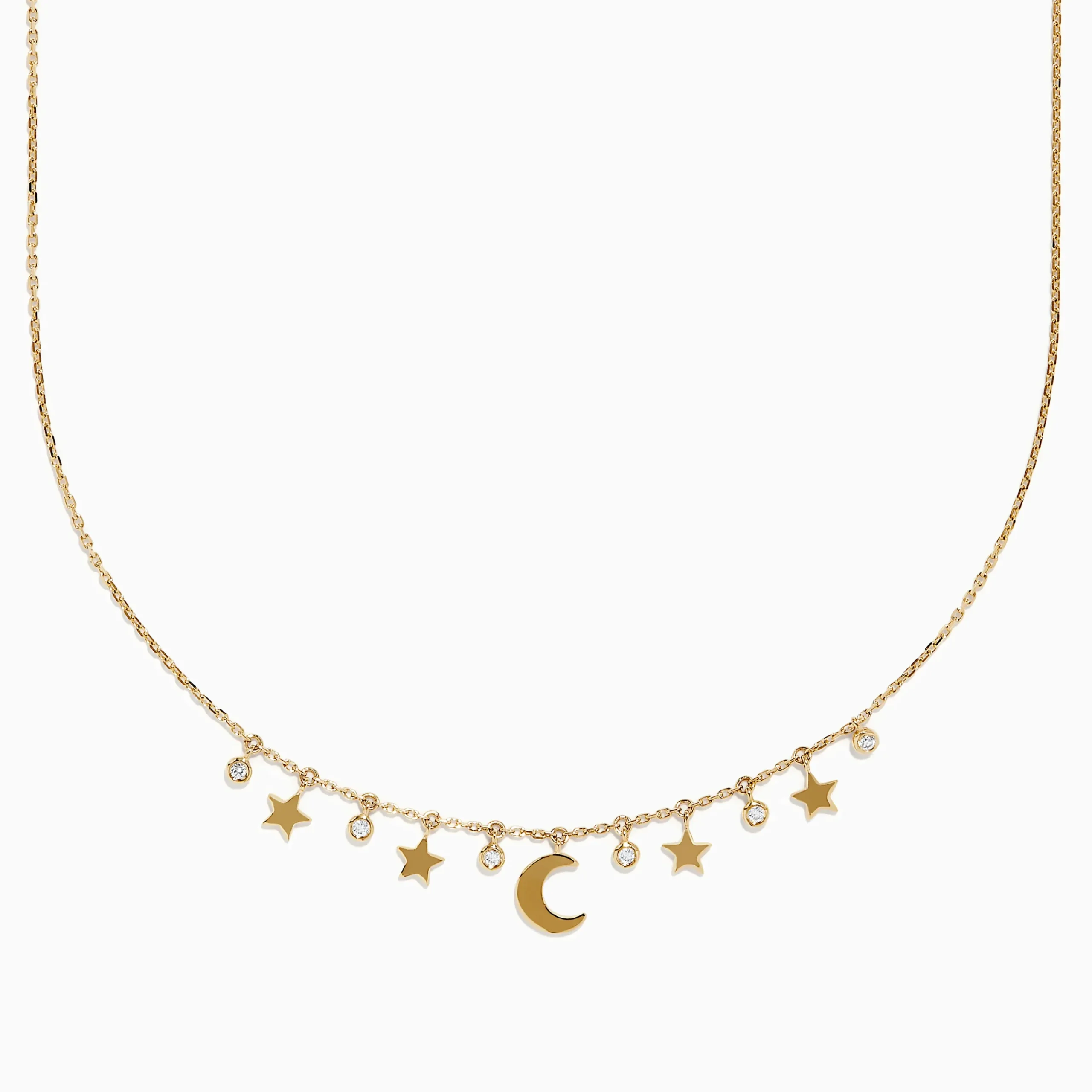 Effy Novelty 14K Yellow Gold Diamond Moon and Stars Necklace