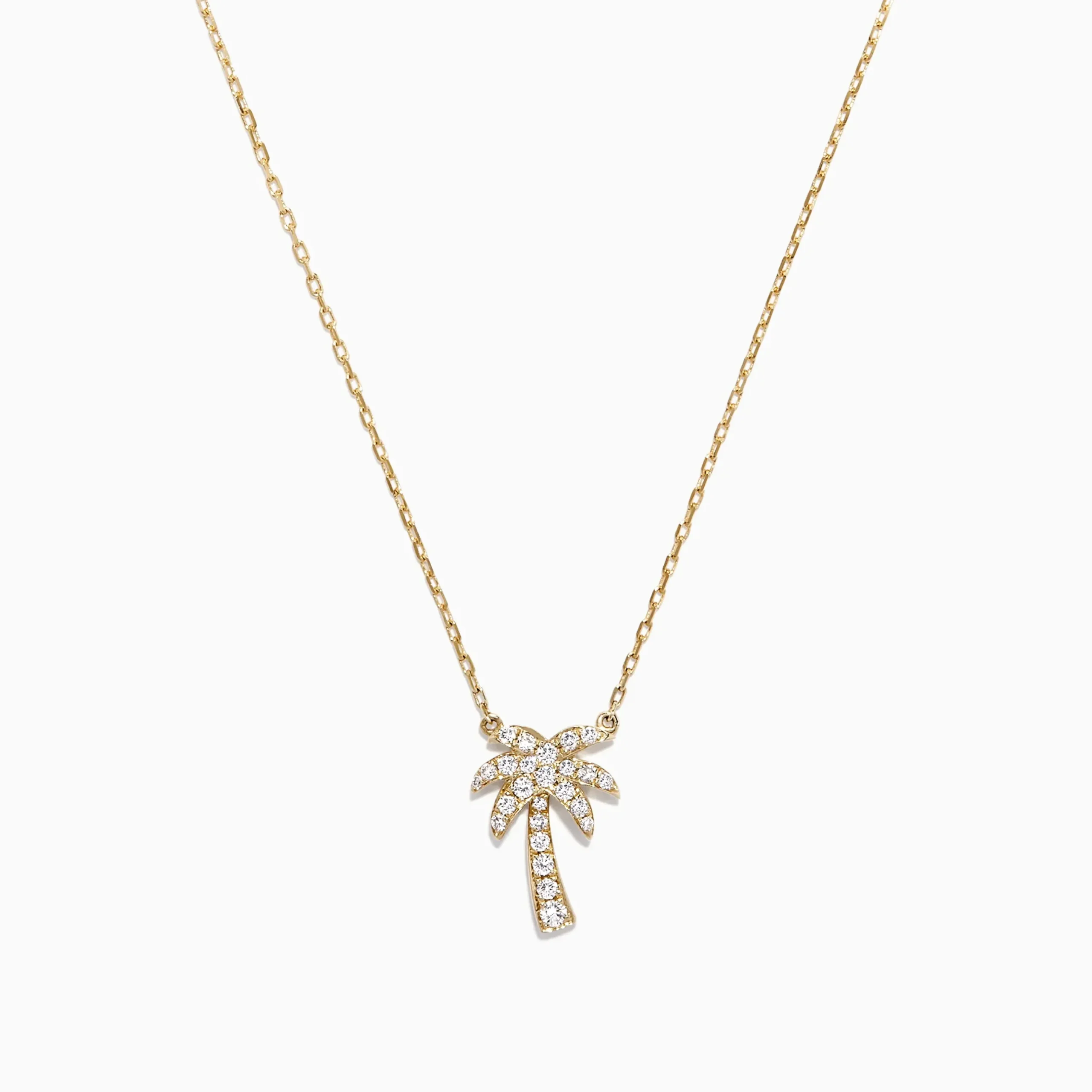 Effy Novelty 14K Yellow Gold Diamond Palm Tree Necklace, 0.23 TCW