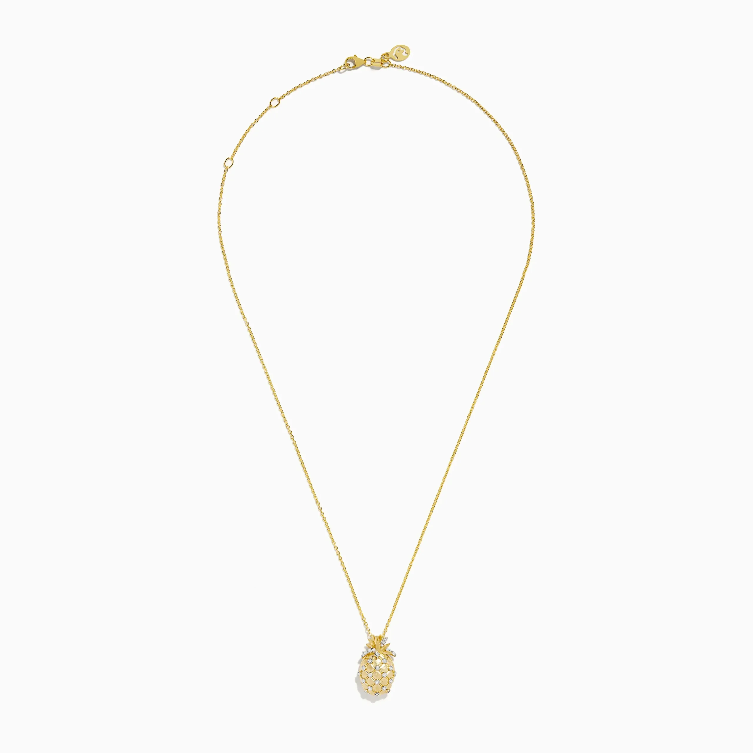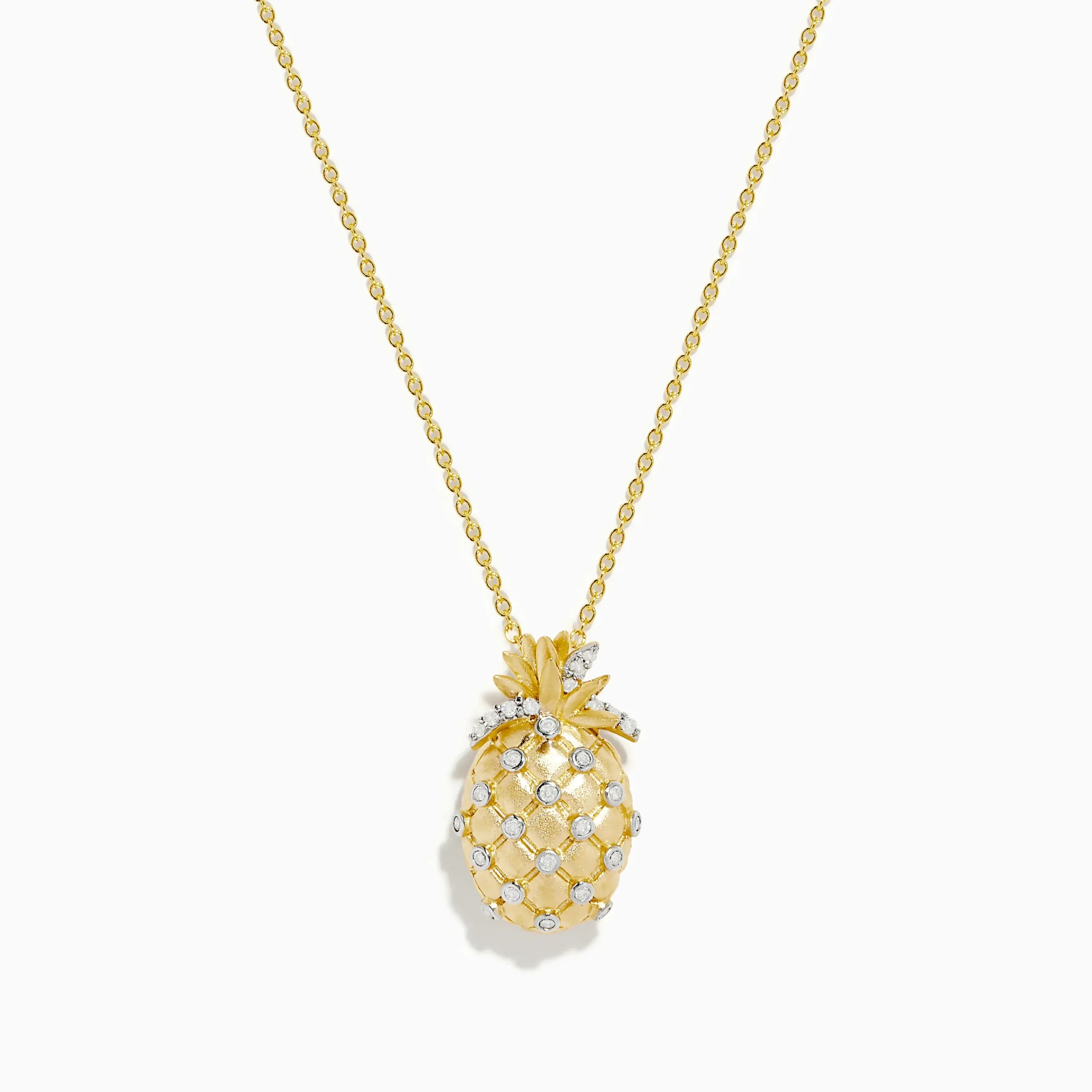Novelty 14K Yellow Gold Diamond Pineapple Pendant
