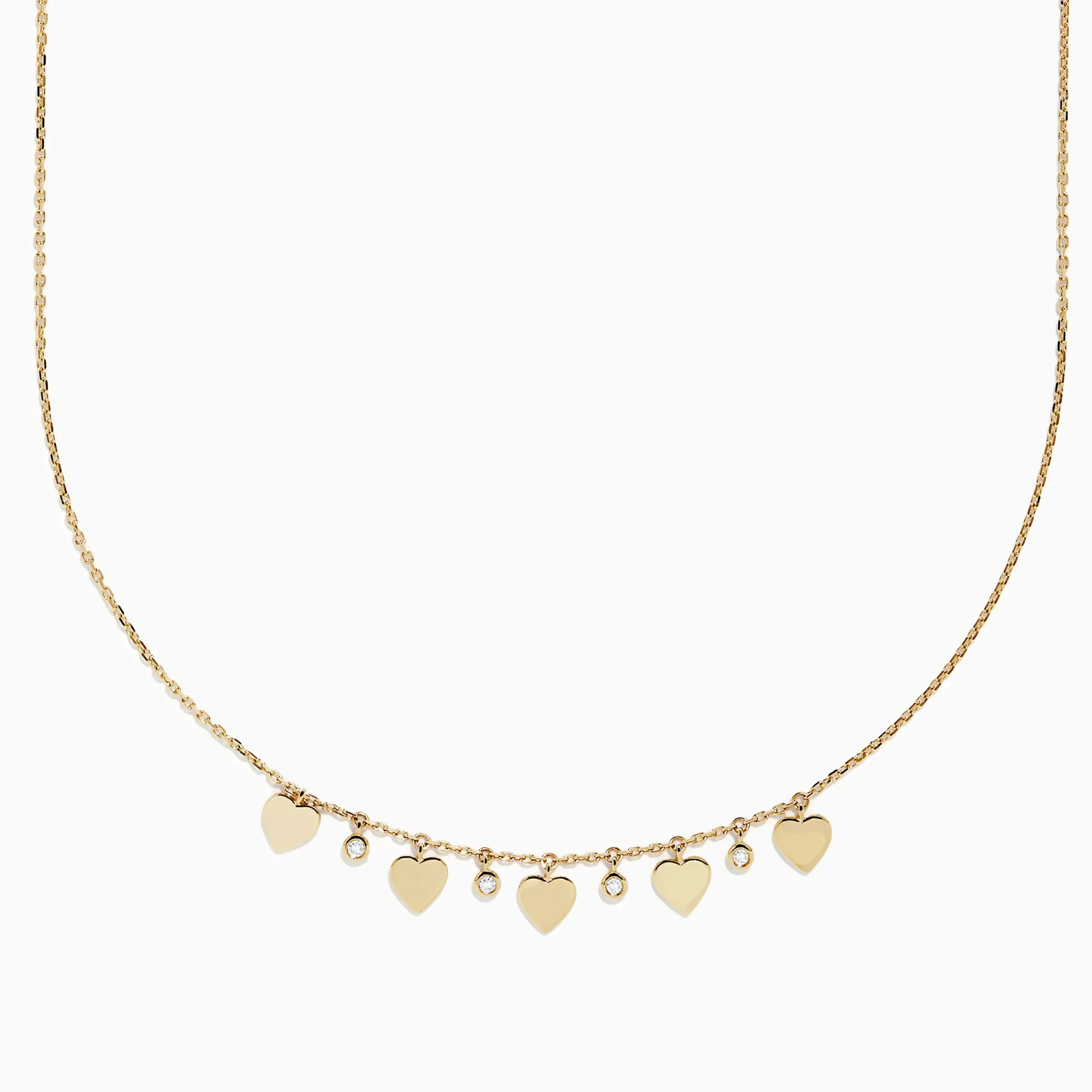 Effy Novelty14K Yellow Gold Diamonds & Hearts Necklace