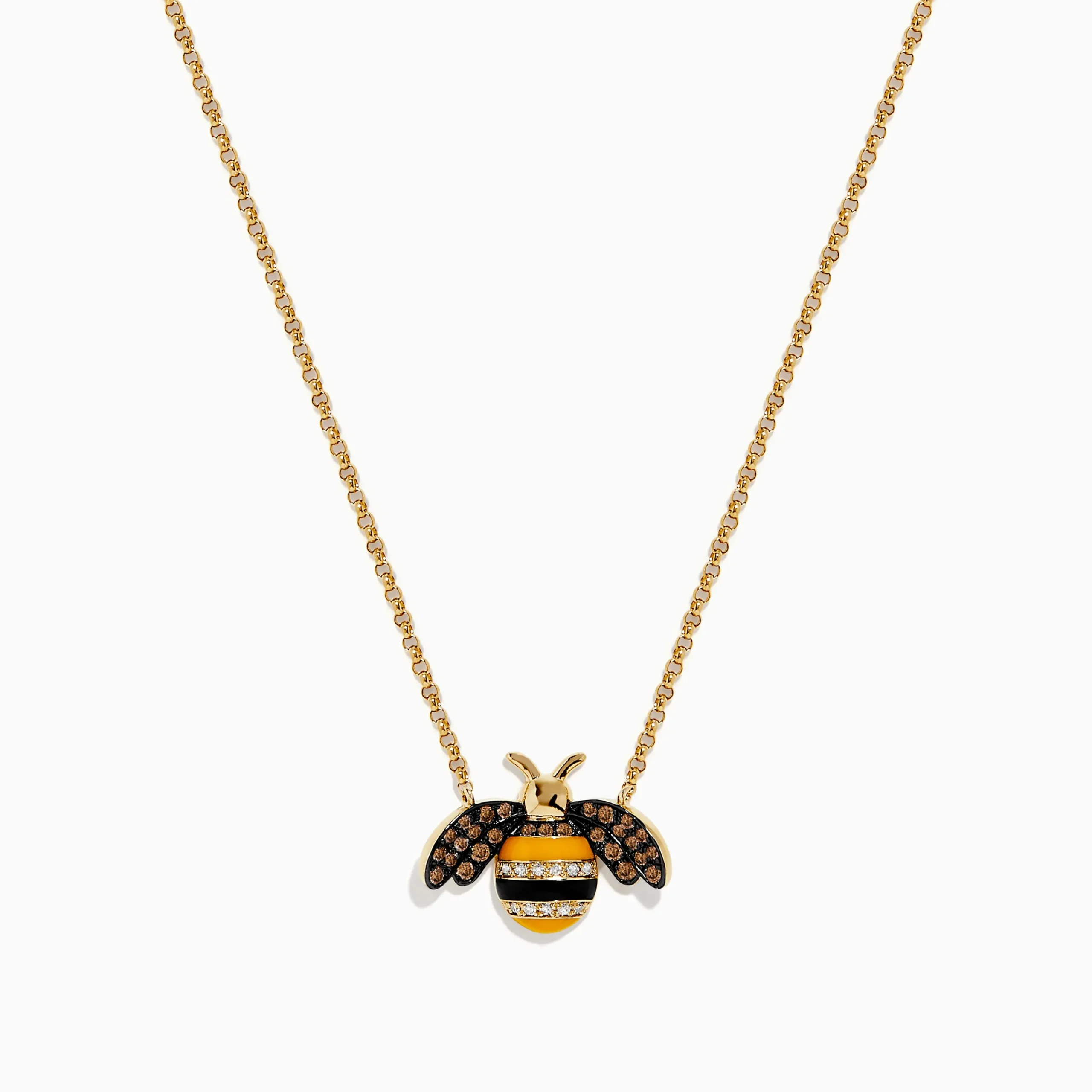 Effy Novelty 14K Yellow Gold Espresso and White Diamond Bee Necklace