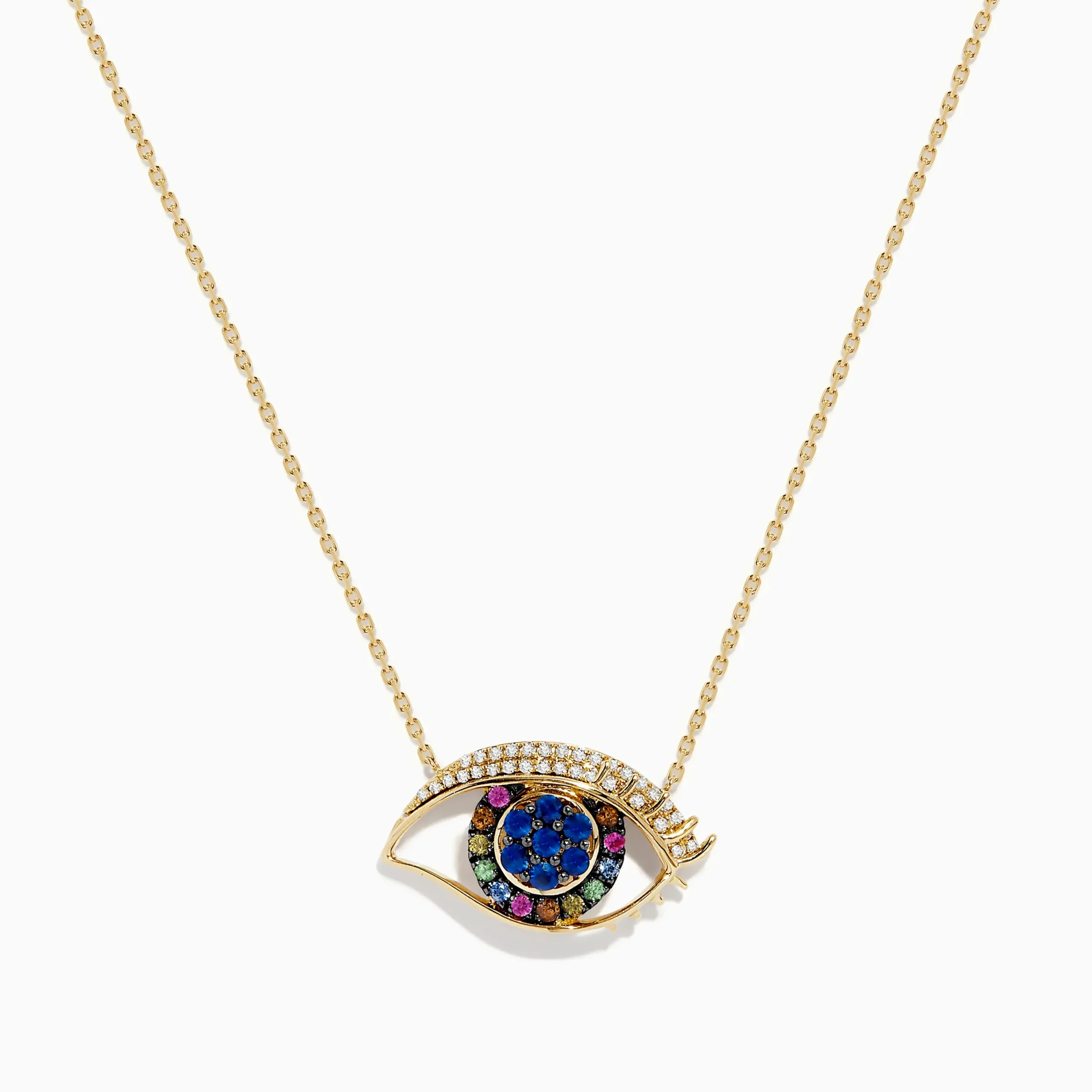 Effy Novelty 14K Yellow Gold Multi Sapphire and Diamond Evil Eye Necklace