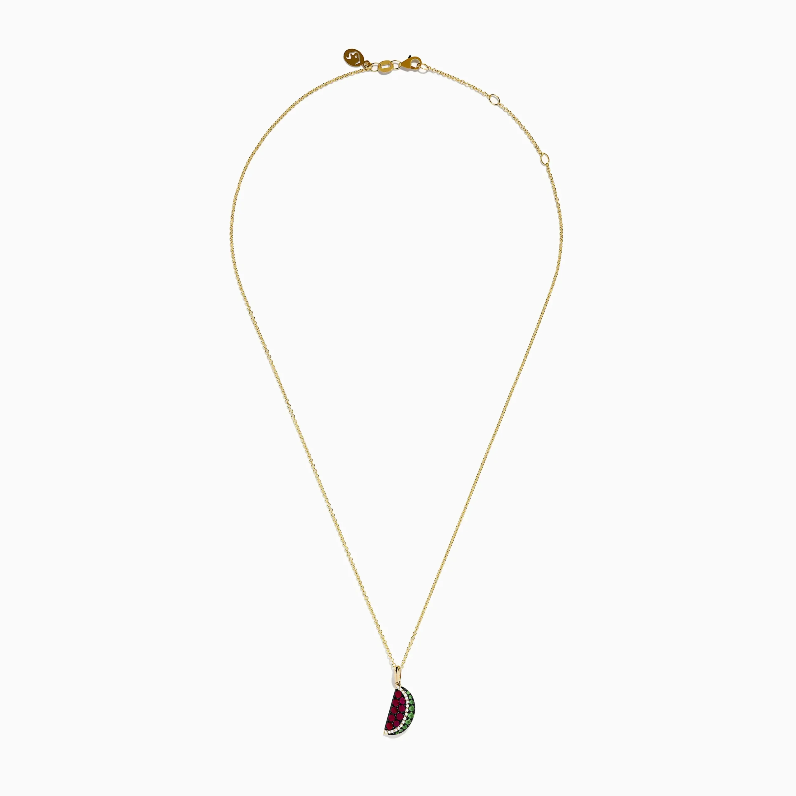 Novelty 14K Yellow Gold Ruby, Tsavorite and Diamond Watermelon Pendant