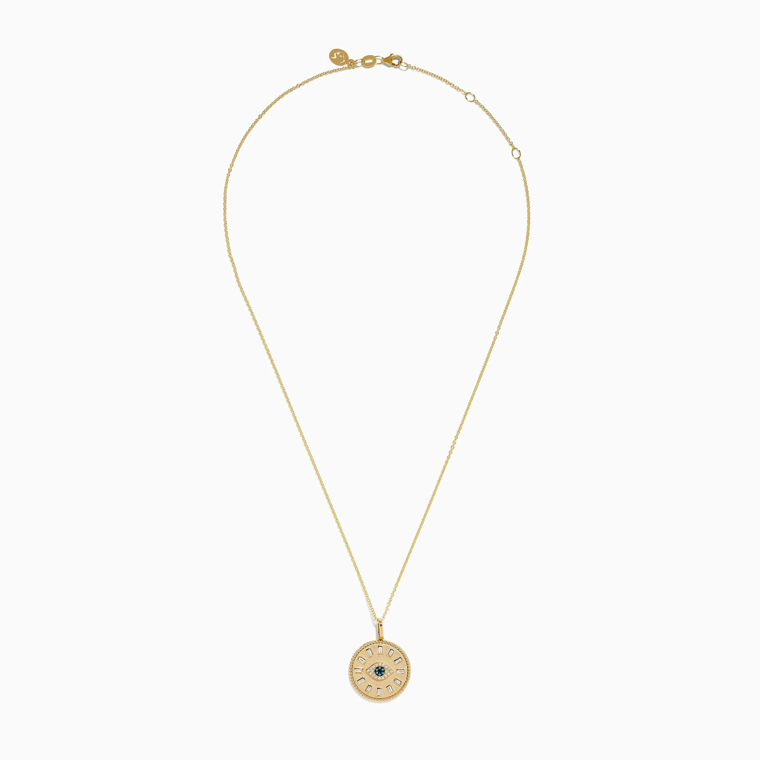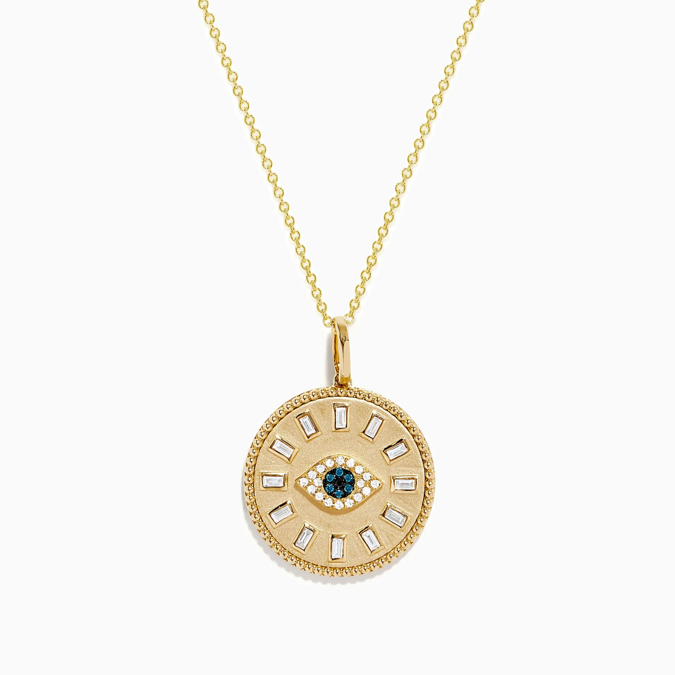 Novelty 14K Yellow Gold White, Blue and Black Diamond Evil Eye Pendant