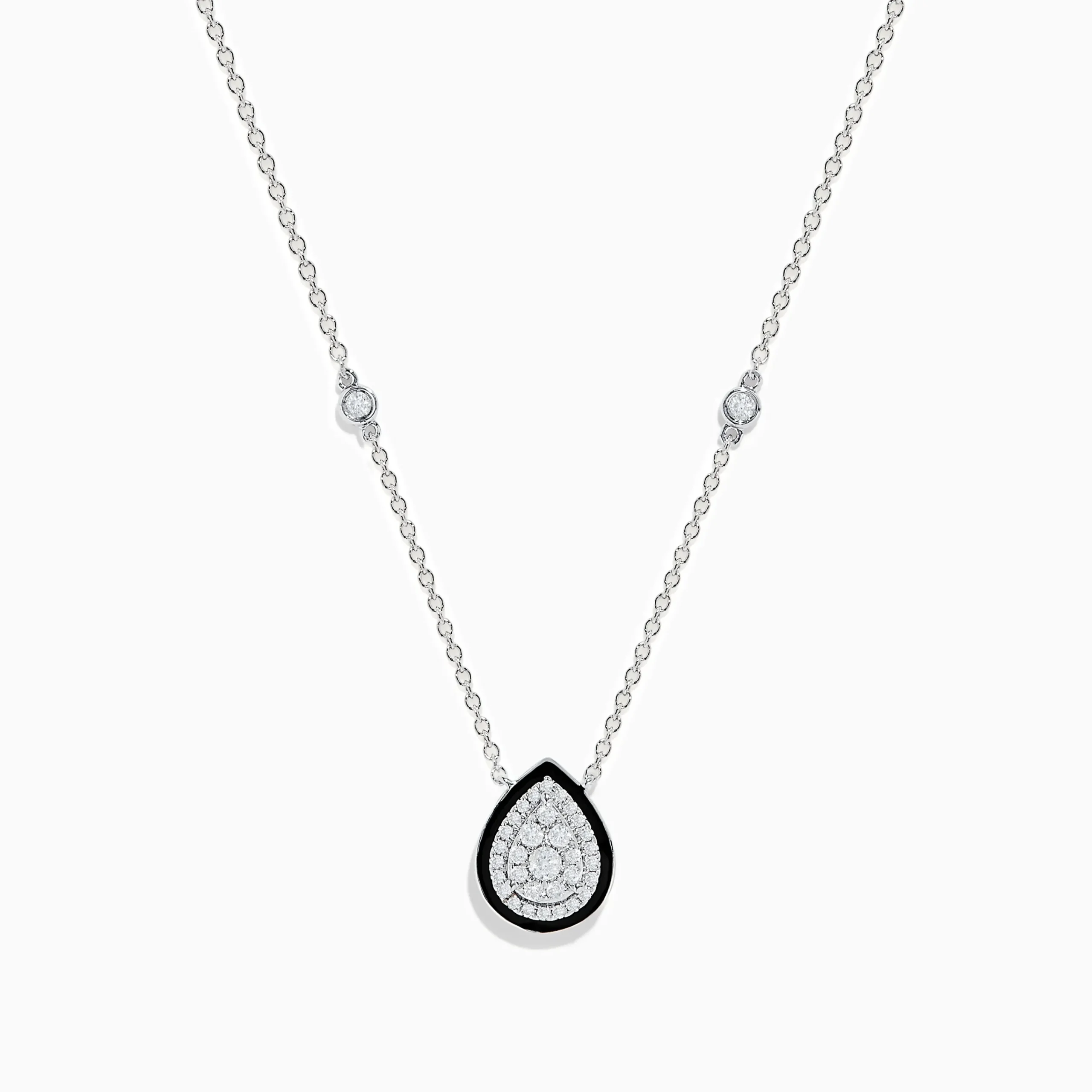 Metal:14K Gold Metal Color:WhiteStone: Round Diamond 0.29Pave Classica 14K White Gold Diamond and Enamel Necklace