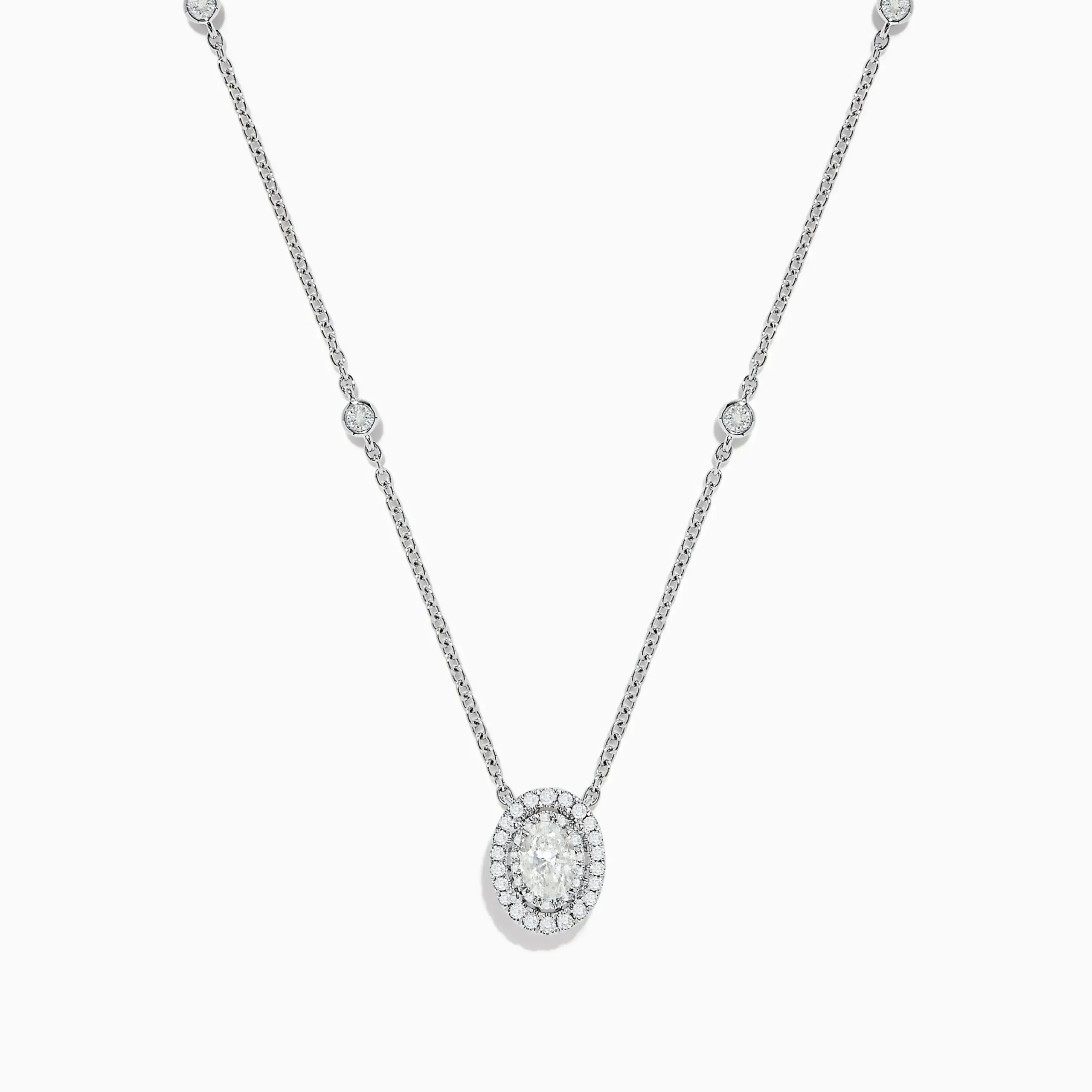Metal:14K Gold Metal Color:WhiteStone: Multi Shape Diamond 0.54Effy Pave Classica 14K White Gold Diamond Oval Necklace