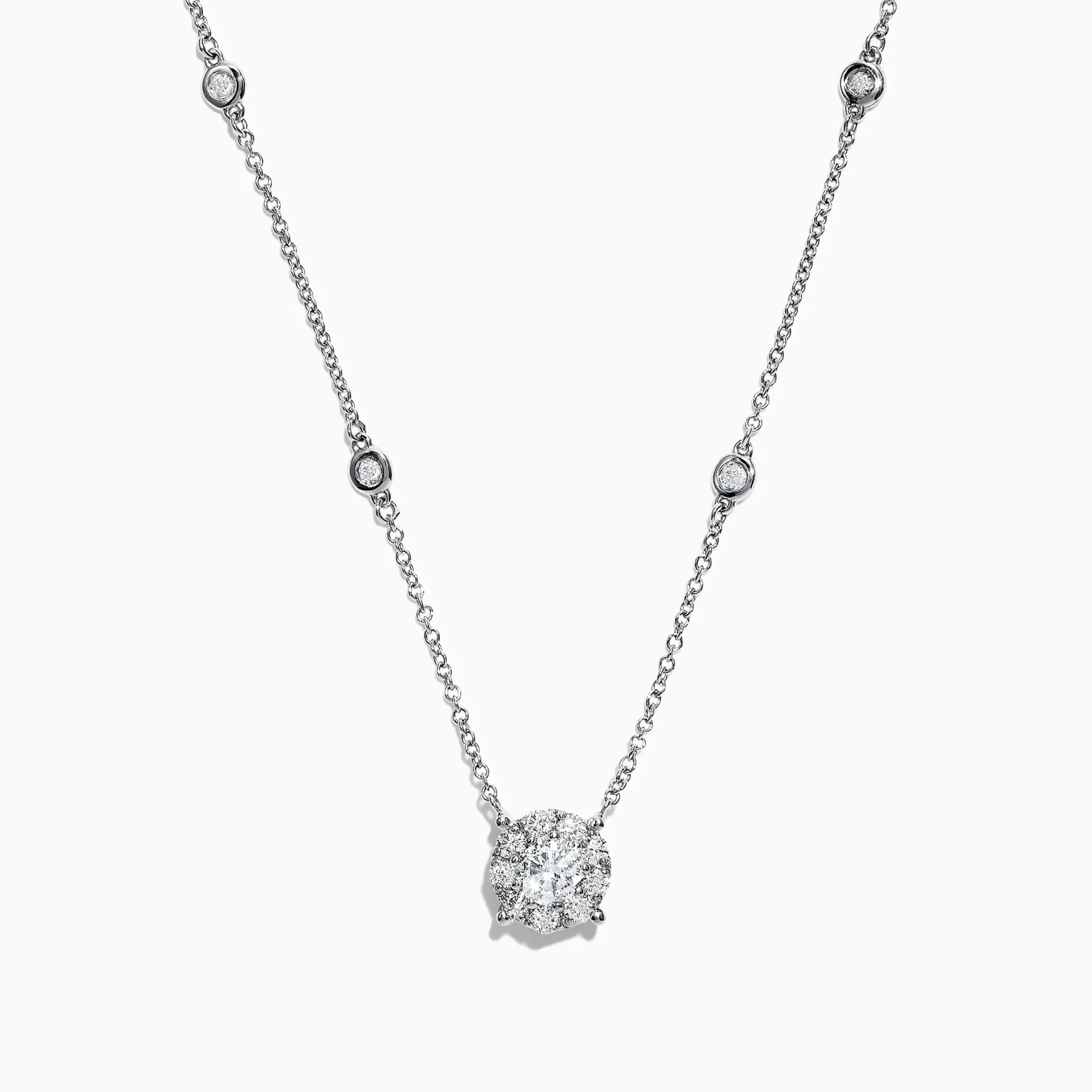 Effy Pave Classica 14K White Gold Diamond Station Cluster Pendant Necklace, 0.82 TCW
