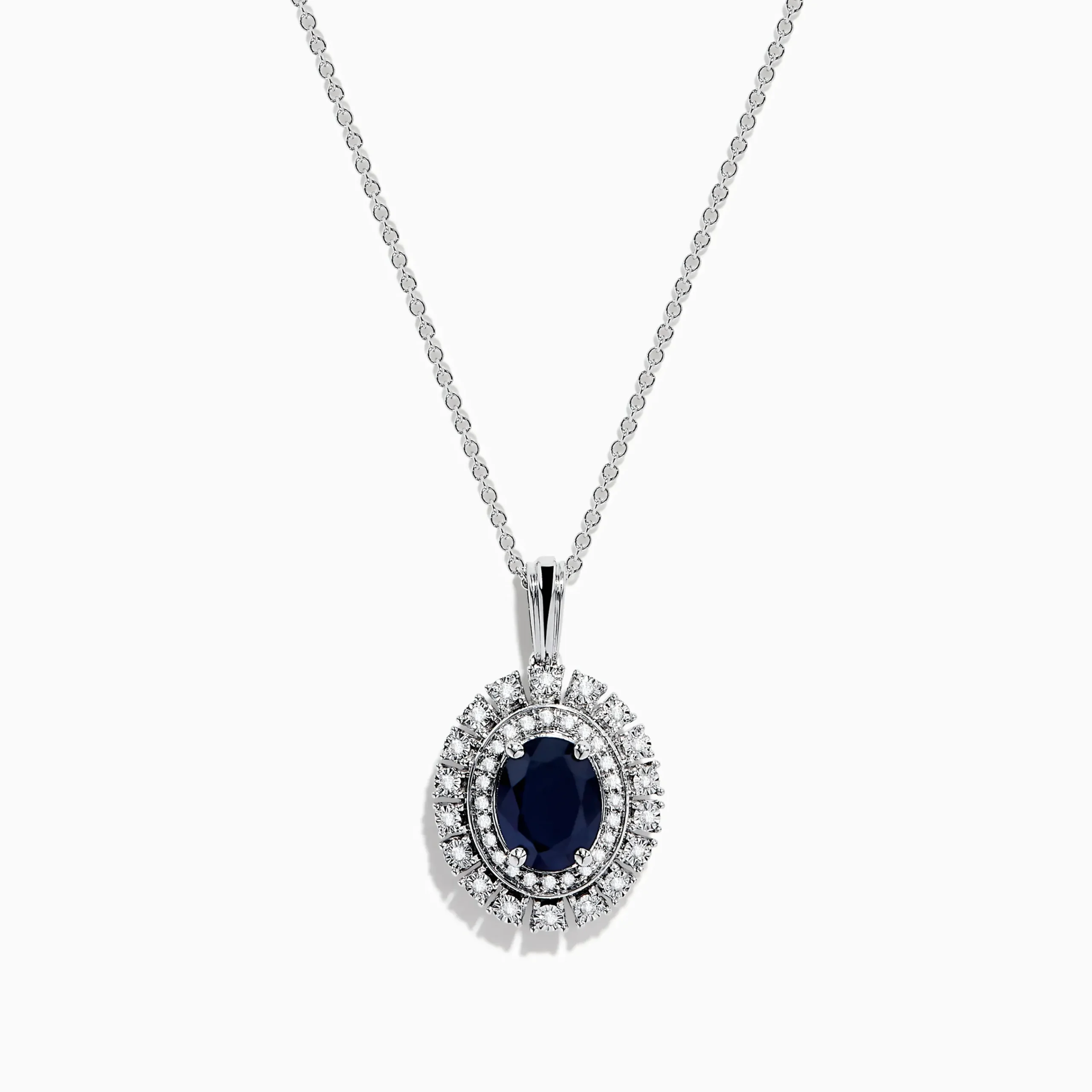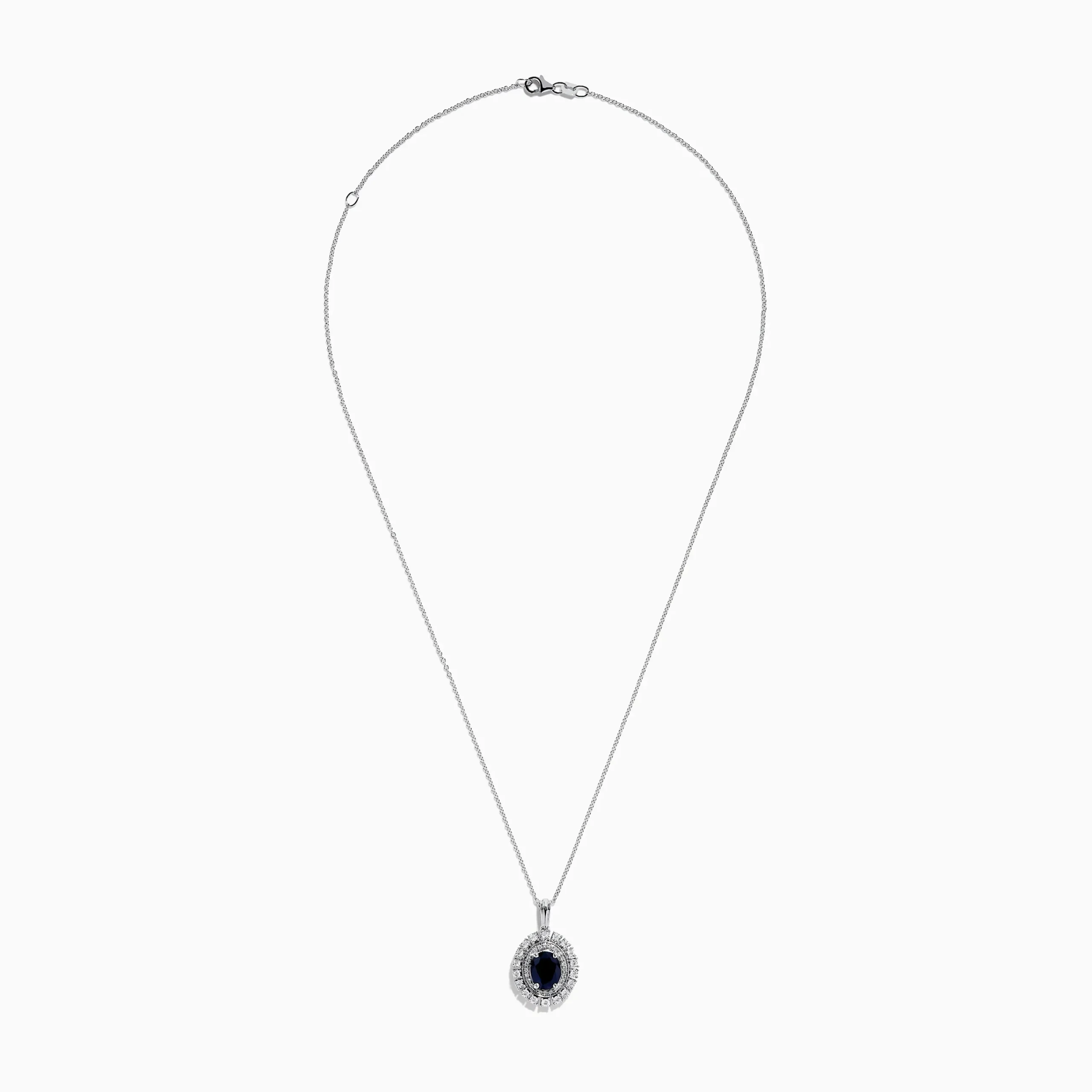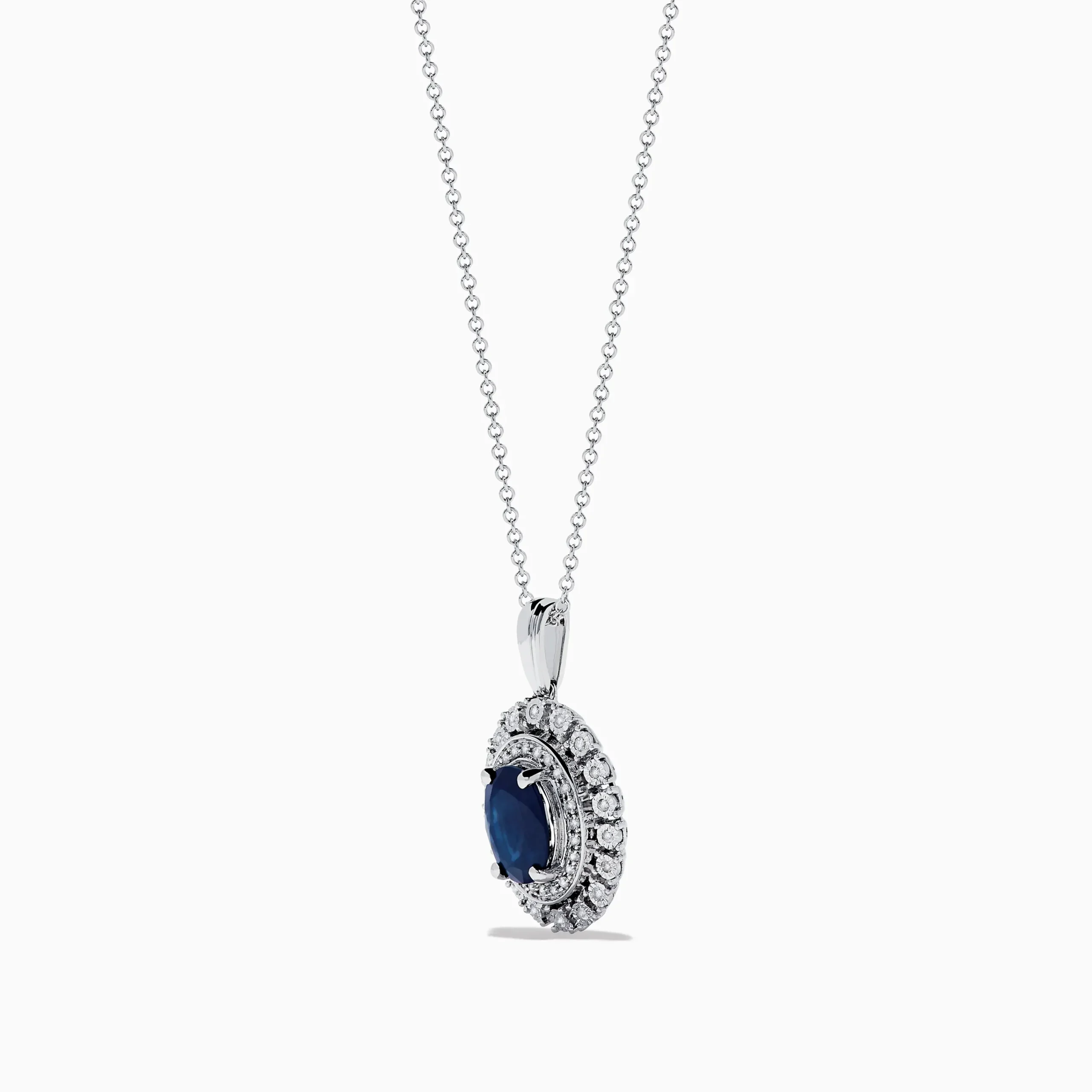 Royal Bleu 14K White Gold Sapphire & Diamond Halo Pendant