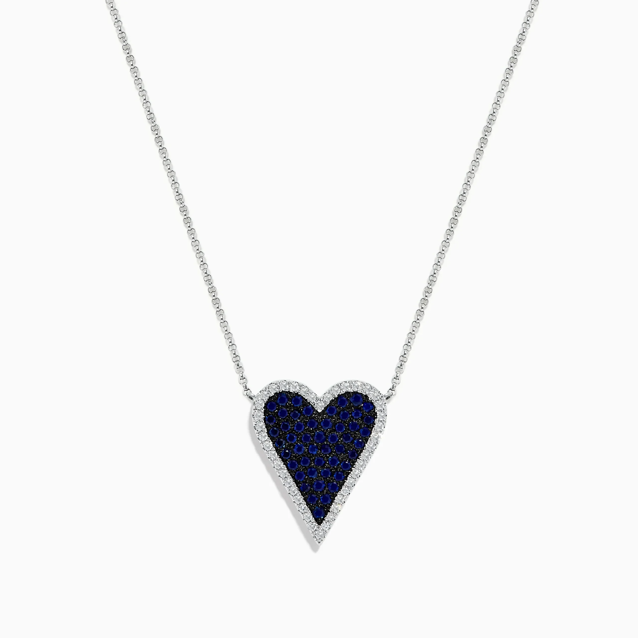 Effy Royale Bleu 14K White Gold Blue Sapphire and Diamond Heart Necklace