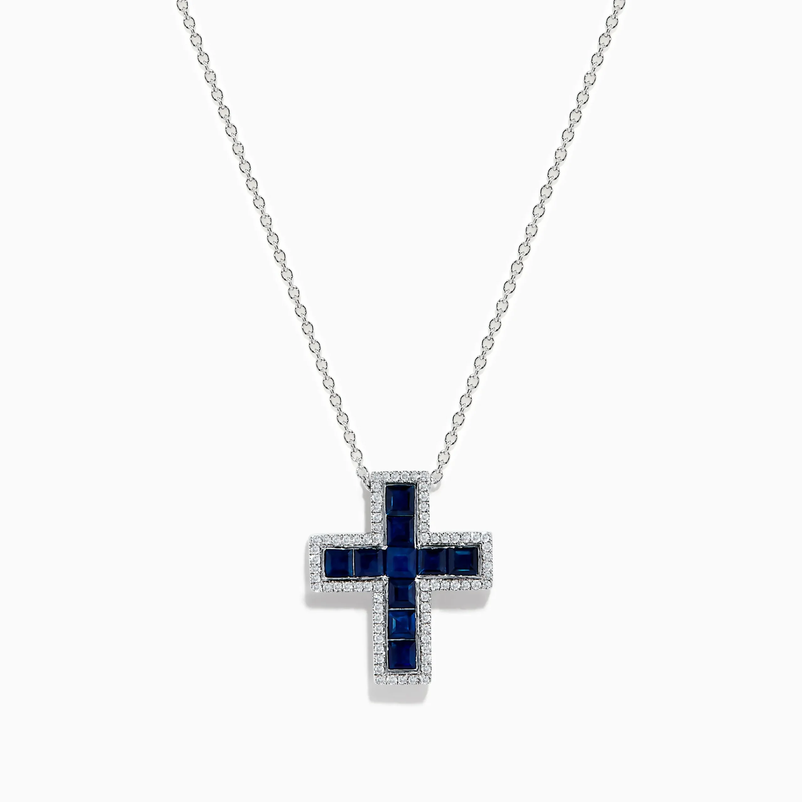 Royale Bleu 14K White Gold Sapphire and Diamond Cross Pendant