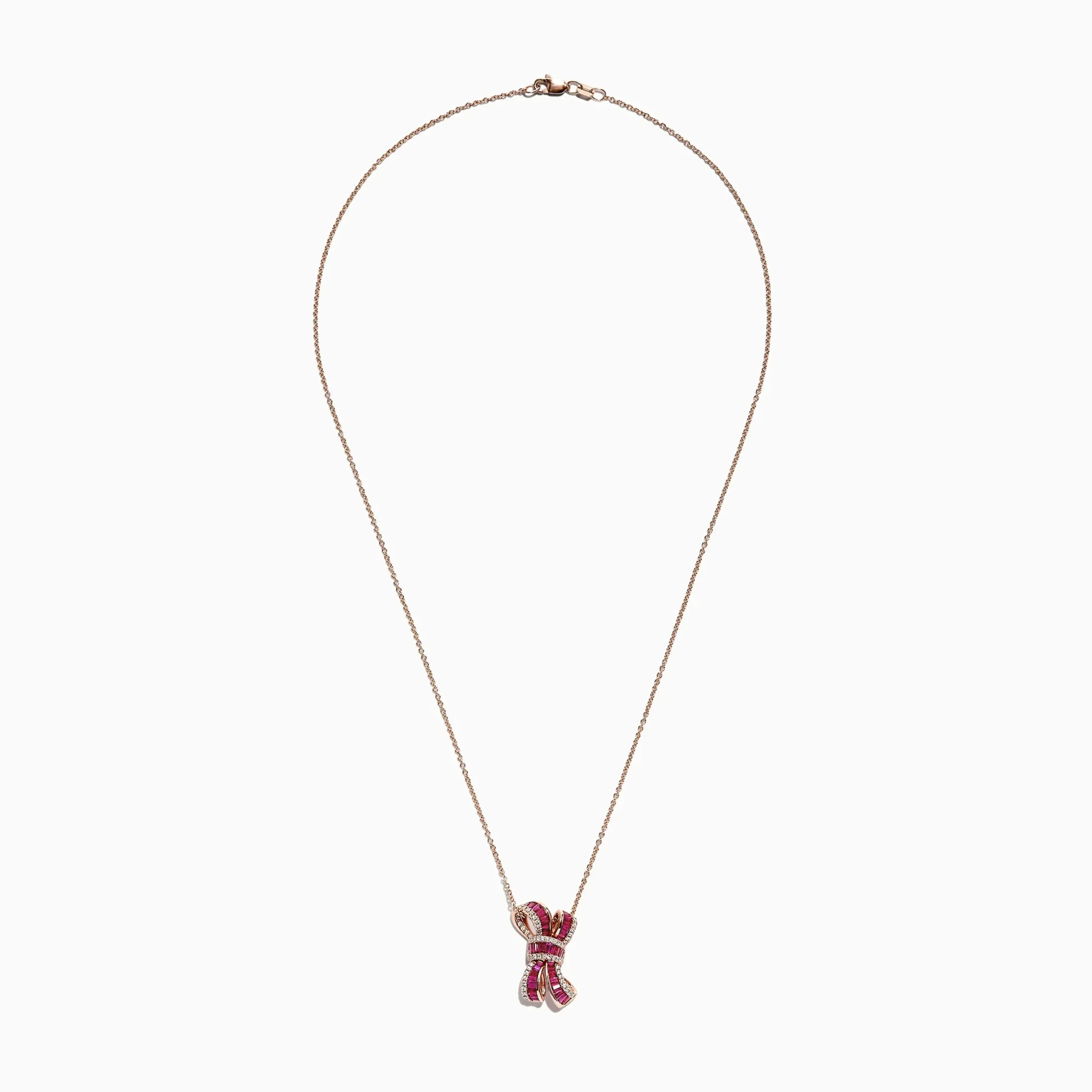 Effy Ruby Royale 14K Rose Gold Ruby Diamond Bow Pendant, 1.94 TCW