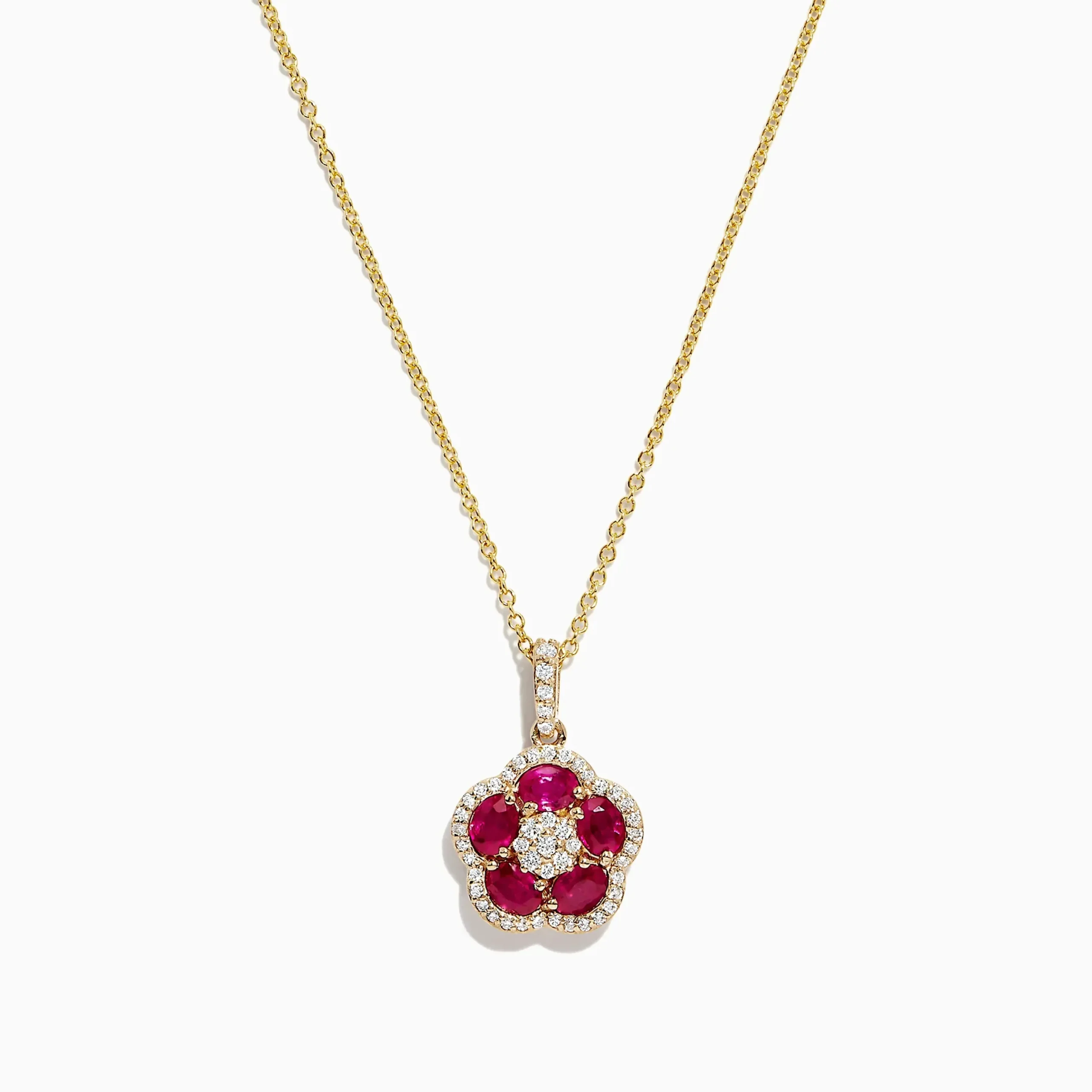 Effy Ruby Royale 14K Yellow Gold Ruby and Diamond Flower Pendant, 1.43 TCW