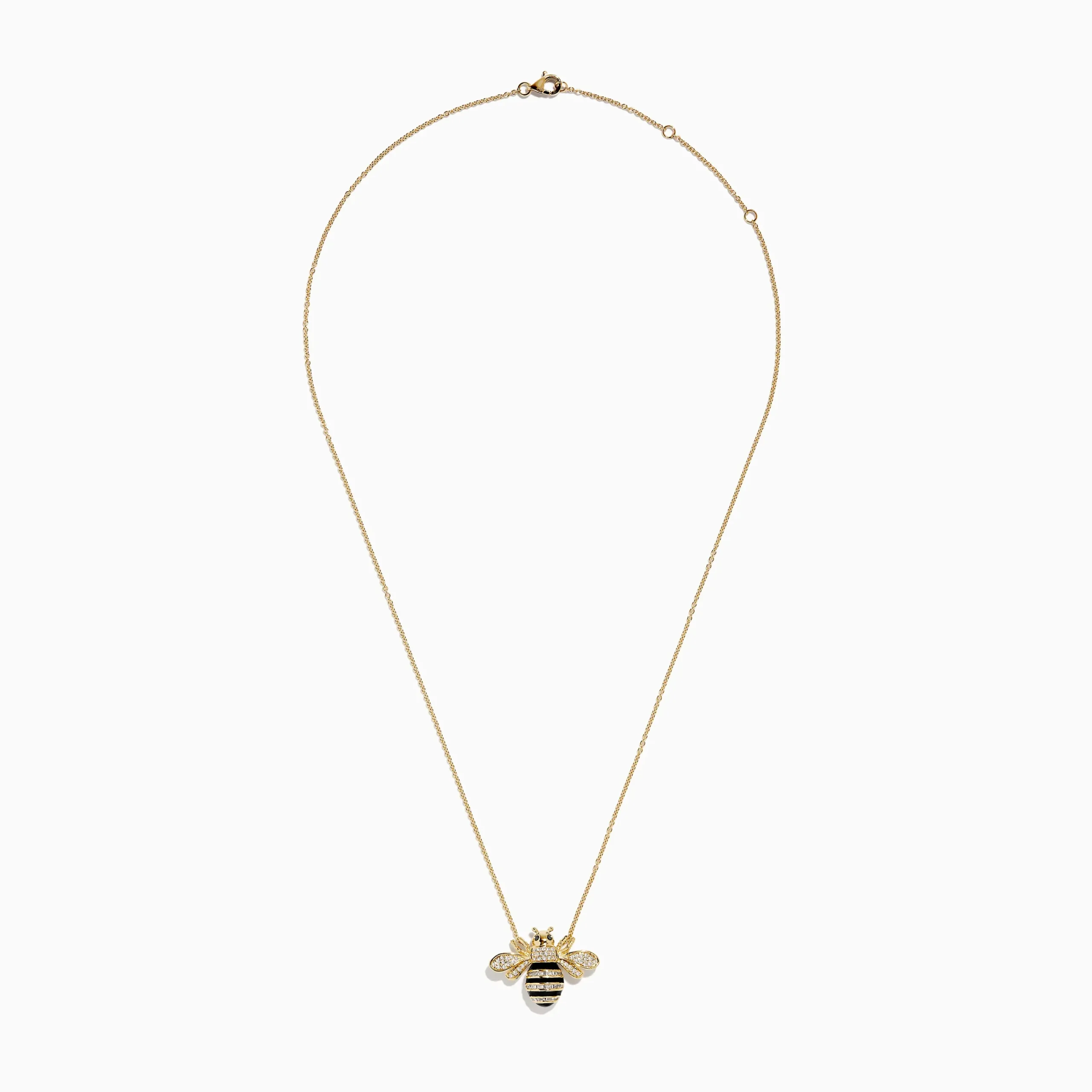 Effy Safari 14K Yellow Gold Black and White Diamond Bee Necklace