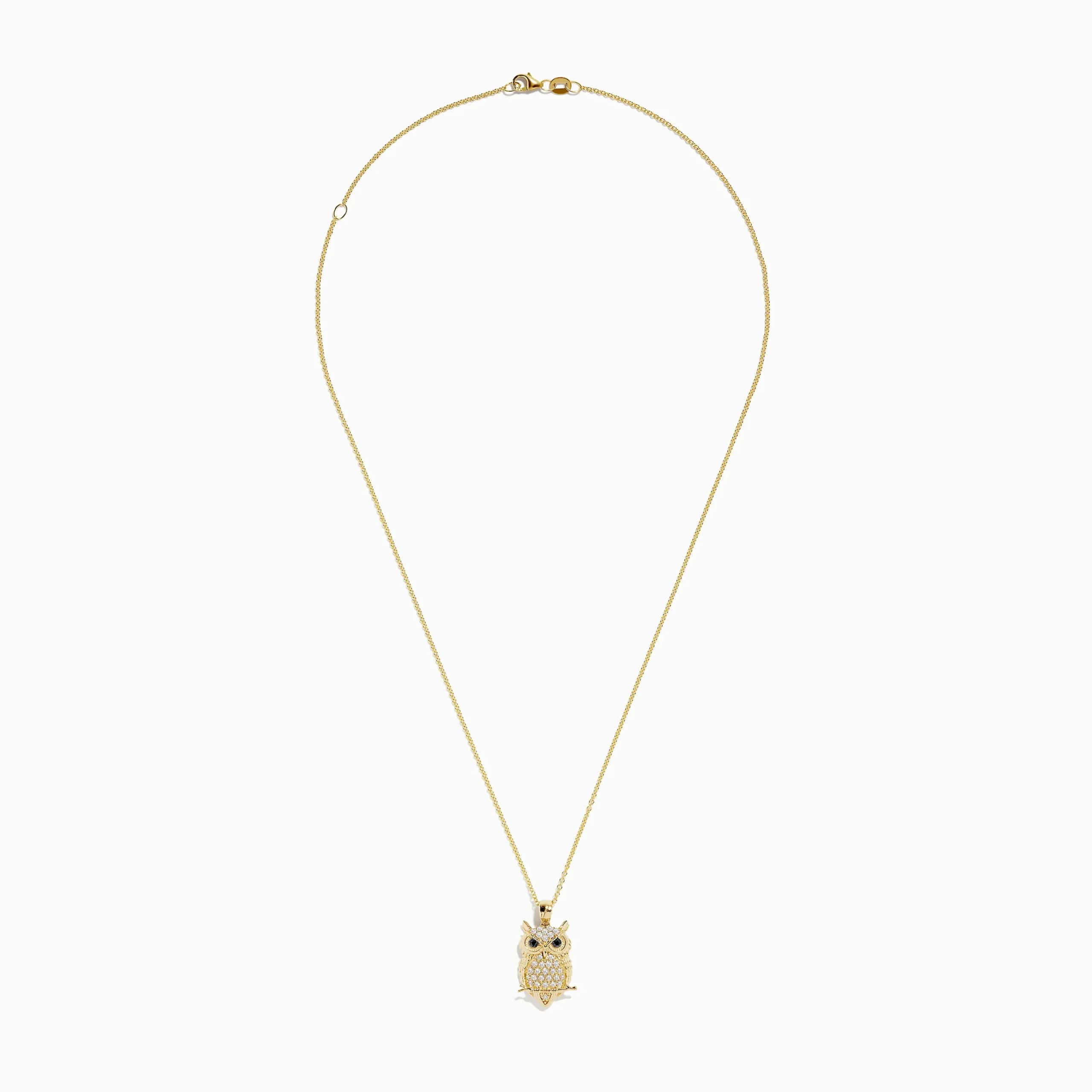 Effy Safari 14K Yellow Gold Black and White Diamond Owl Pendant